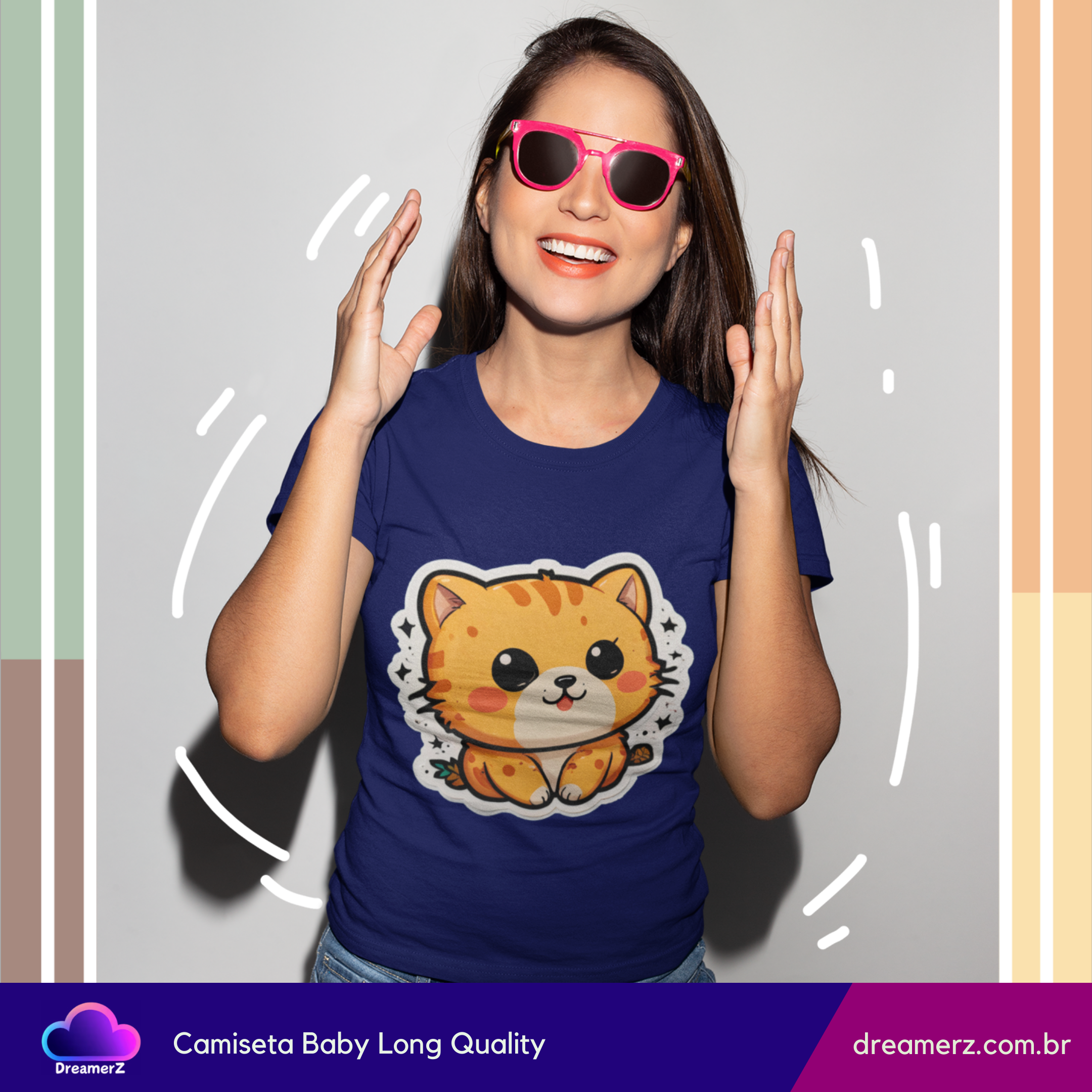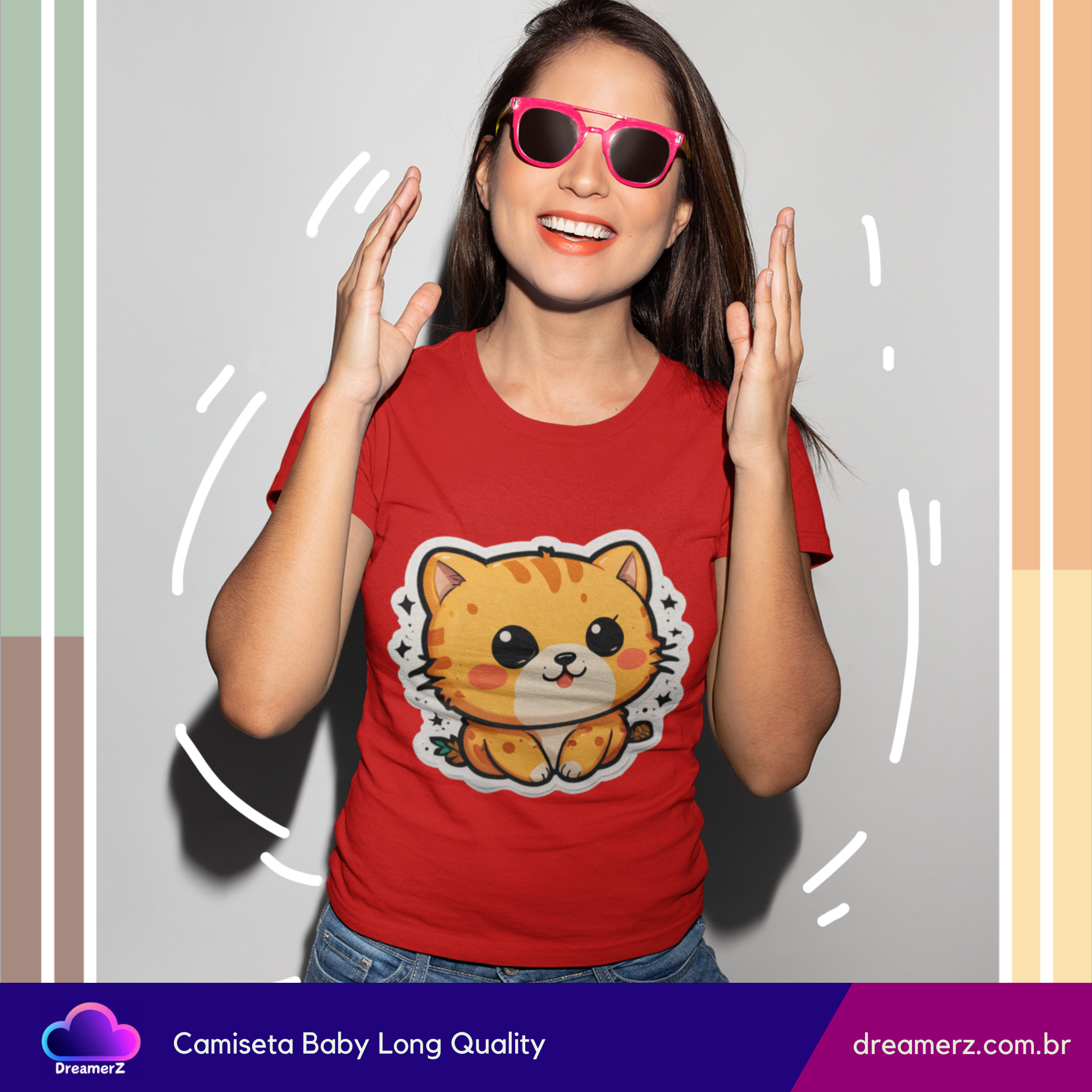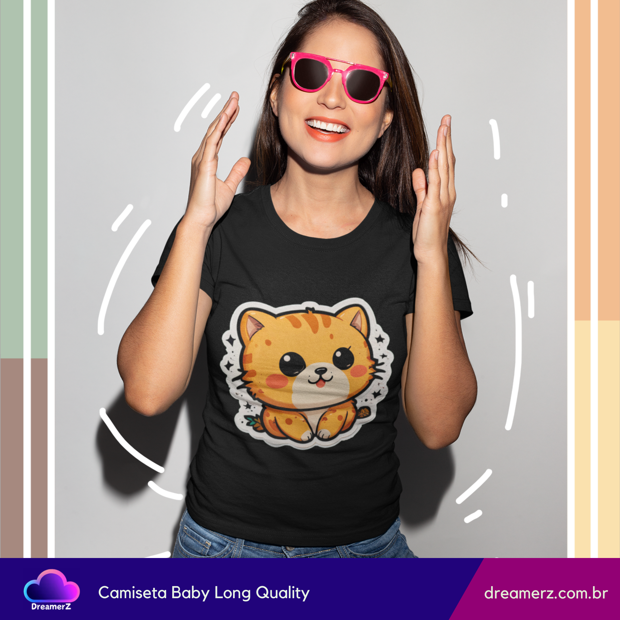 Se você ama gatos e não resiste a uma estampa fofa, essa camiseta foi feita pra você! Com um design exclusivo de um gatinho estilo kawaii (fofinho nível máximo!), ela combina conforto, estilo e muito charme em uma só peça.