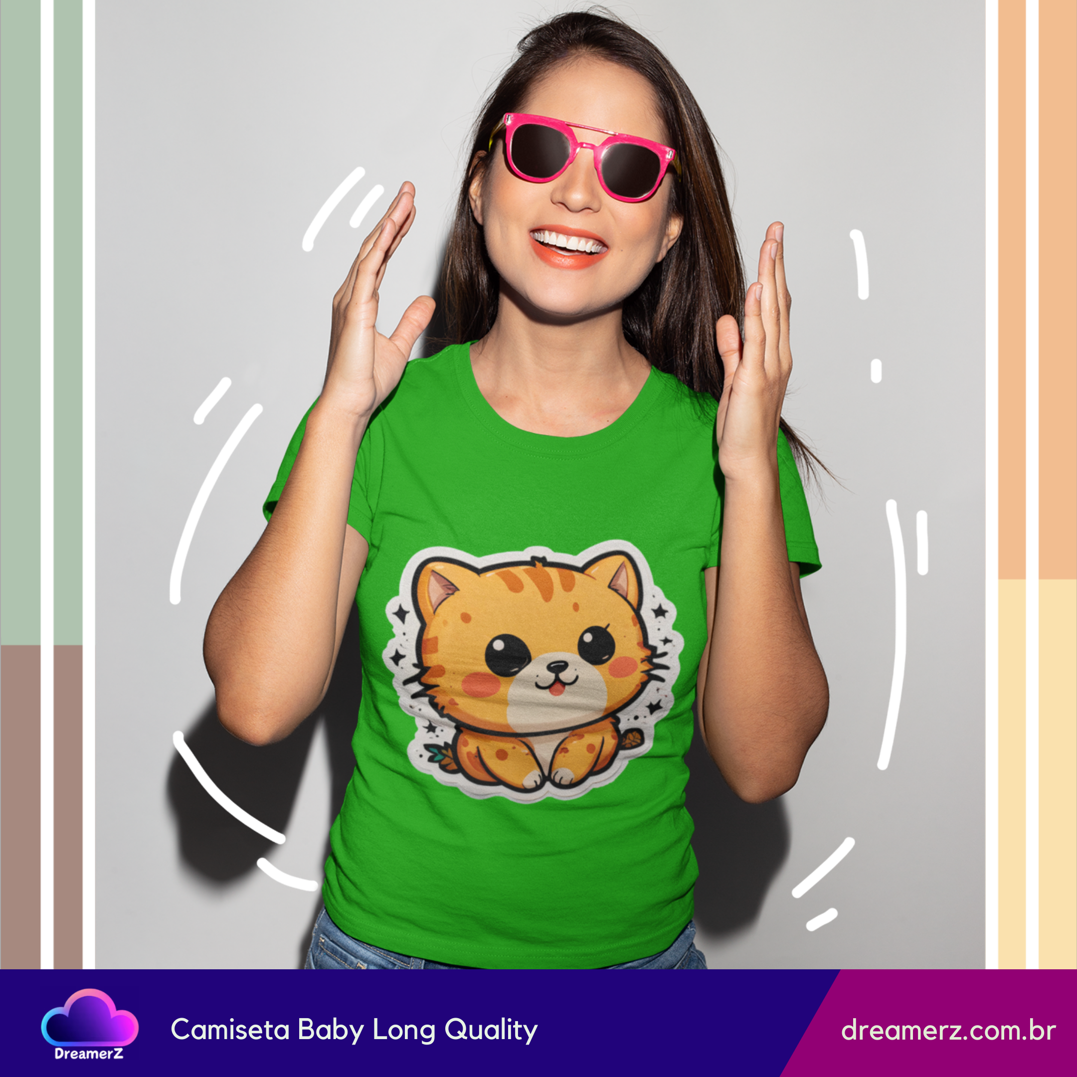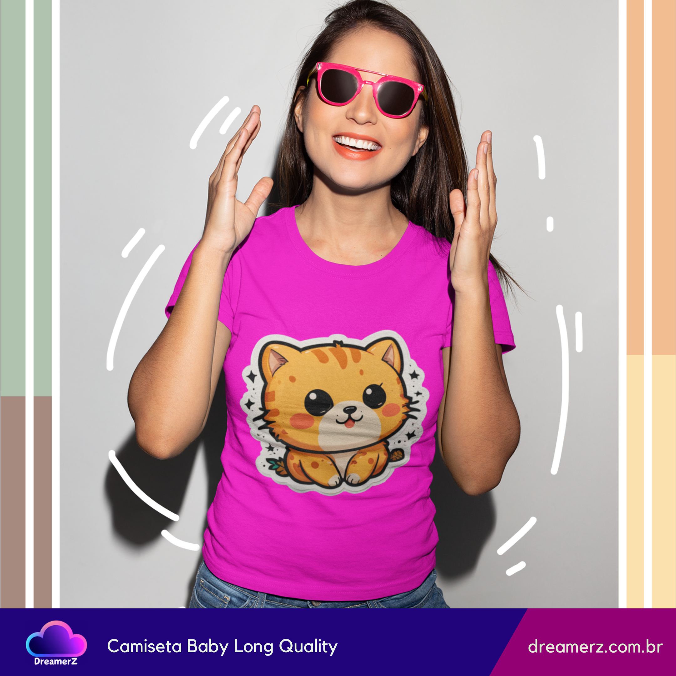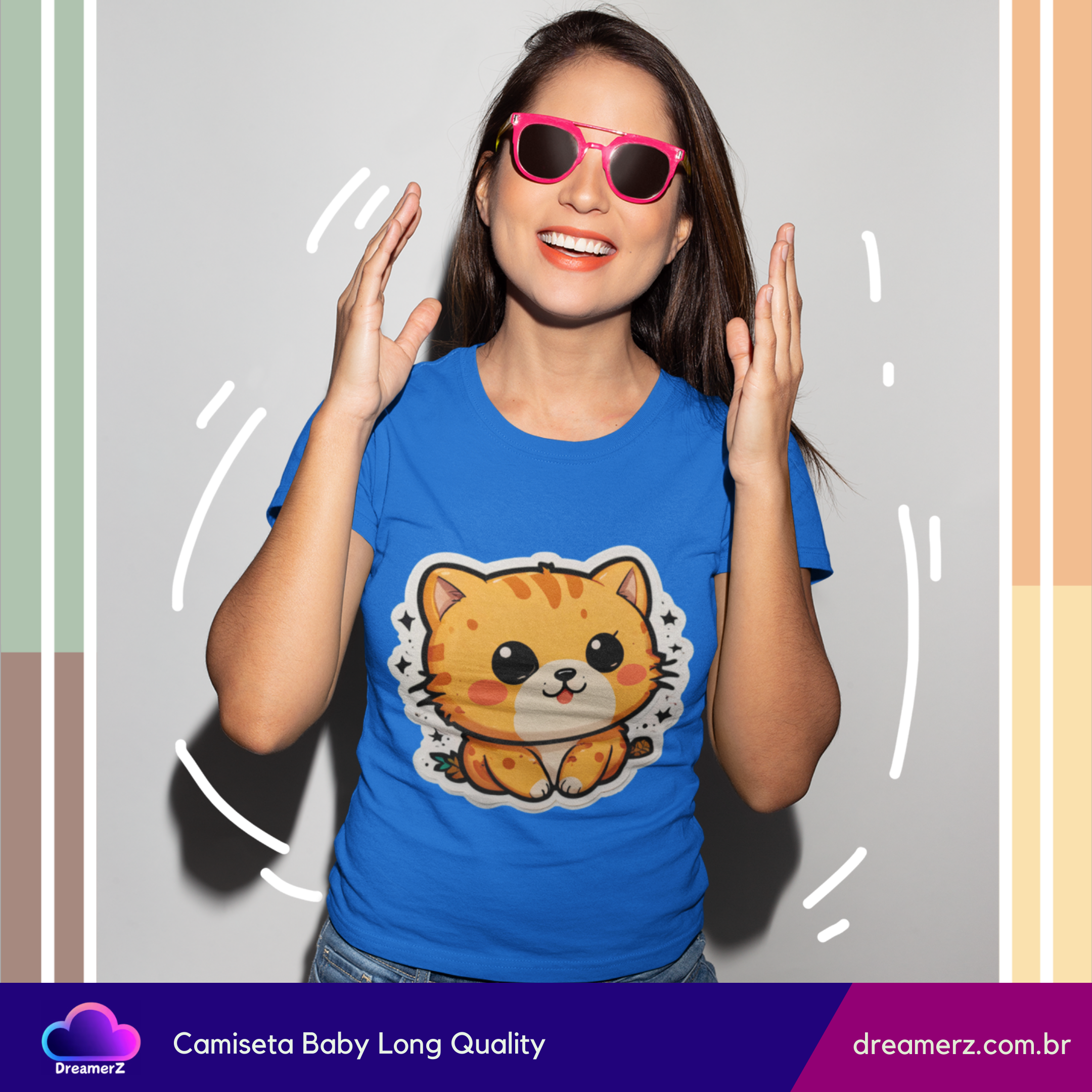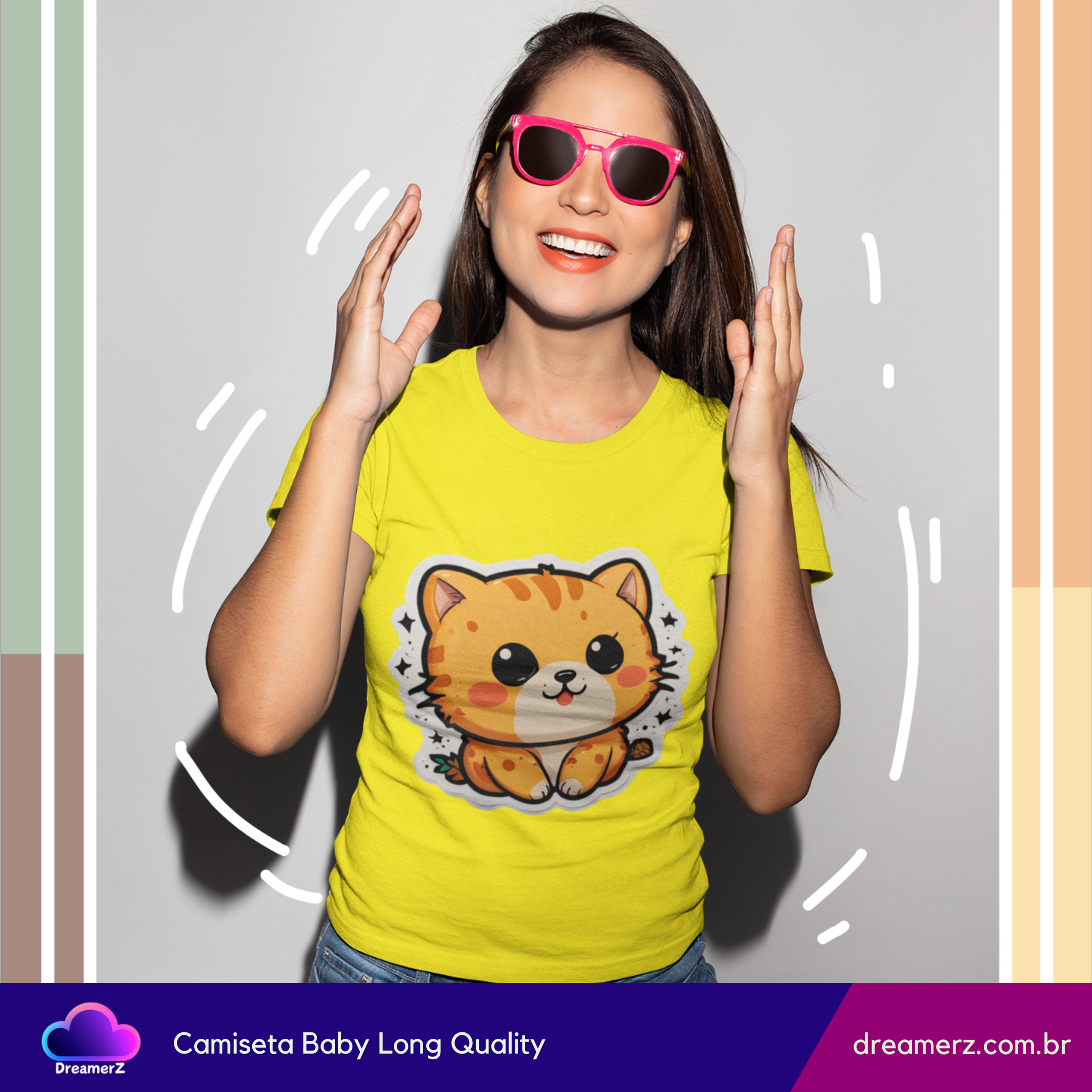 Se você ama gatos e não resiste a uma estampa fofa, essa camiseta foi feita pra você! Com um design exclusivo de um gatinho estilo kawaii (fofinho nível máximo!), ela combina conforto, estilo e muito charme em uma só peça.
