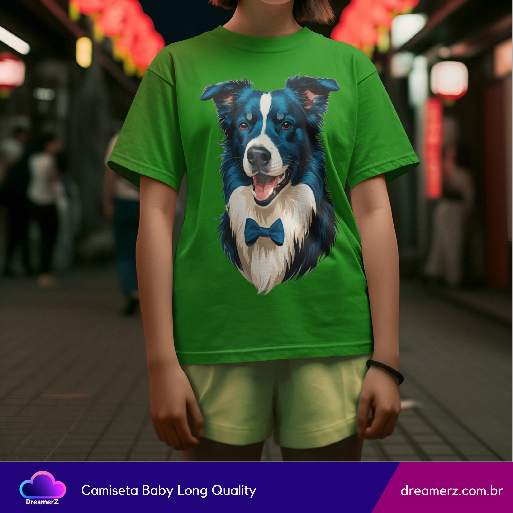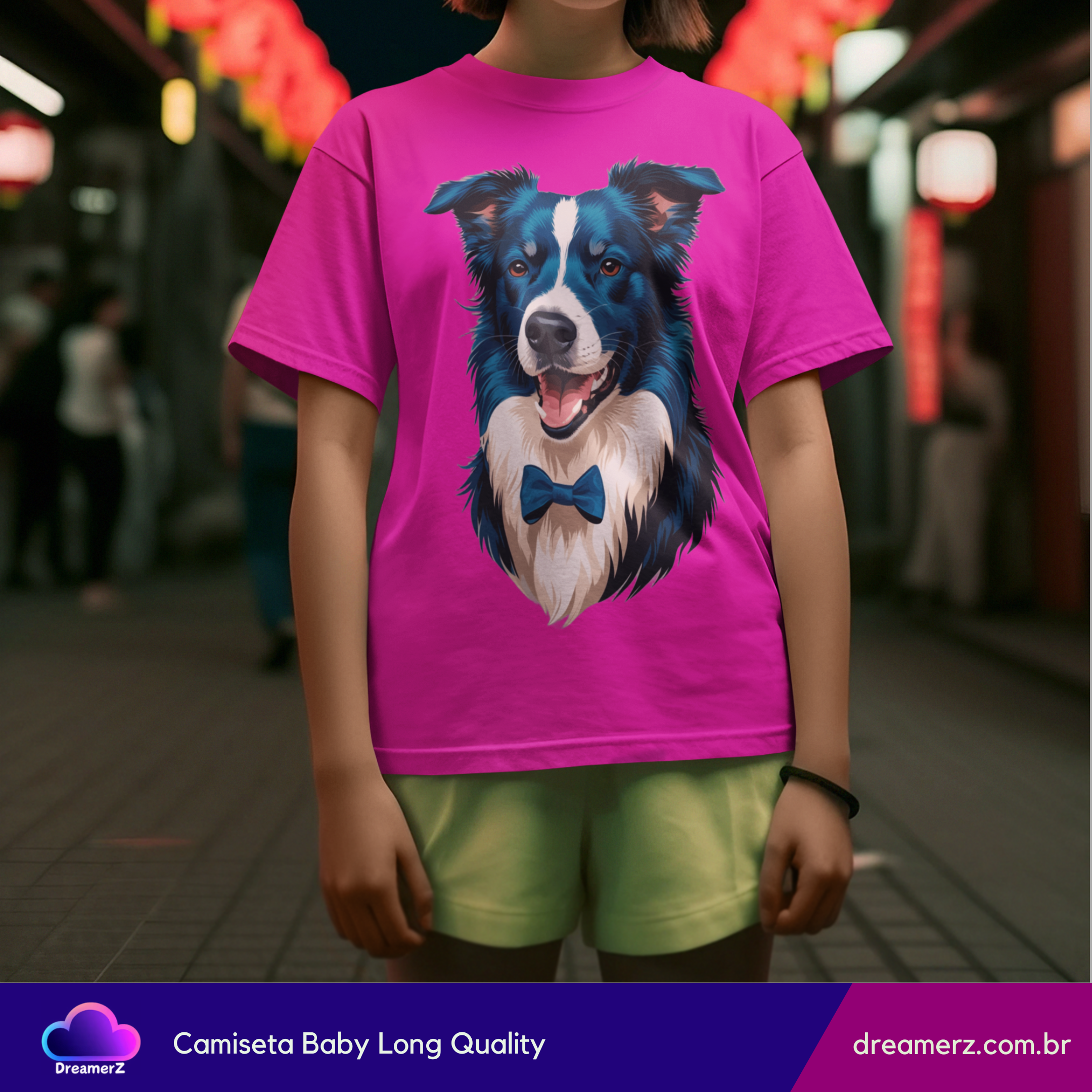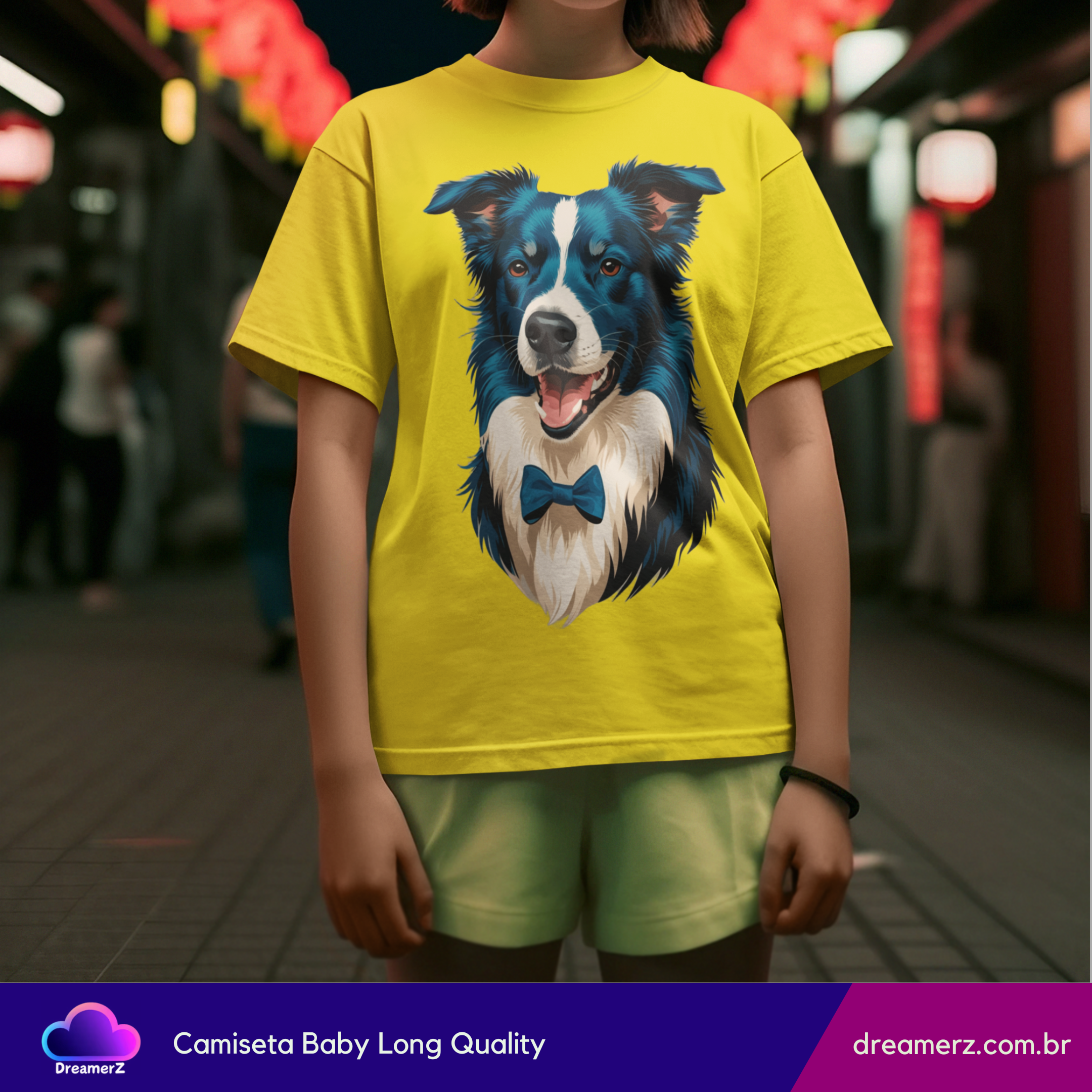 Com um olhar amigável, pelos azuis vibrantes e uma gravatinha borboleta, essa camiseta é a escolha perfeita para quem ama animais com personalidade e atitude.