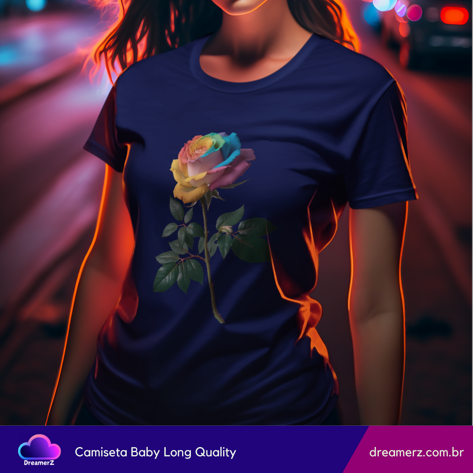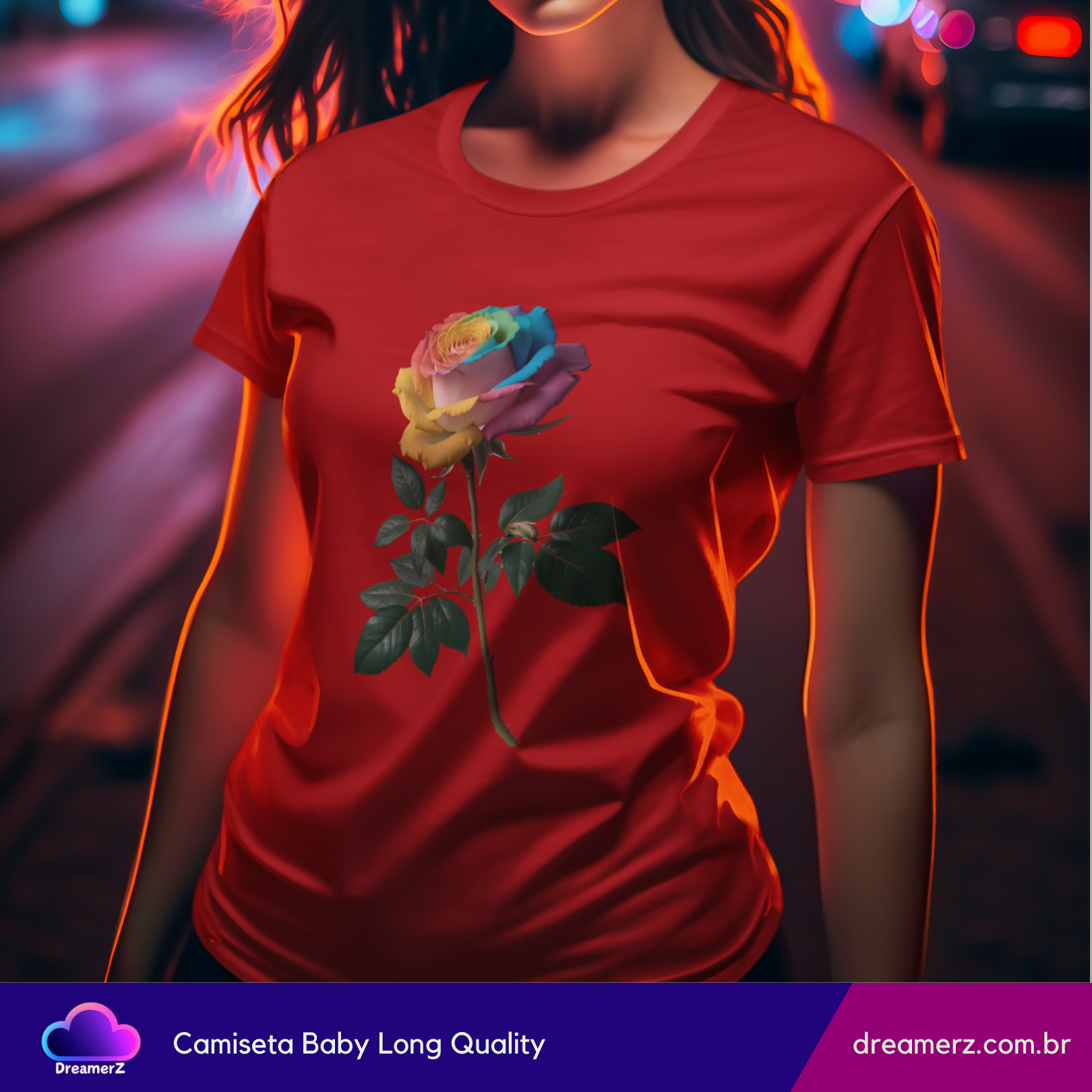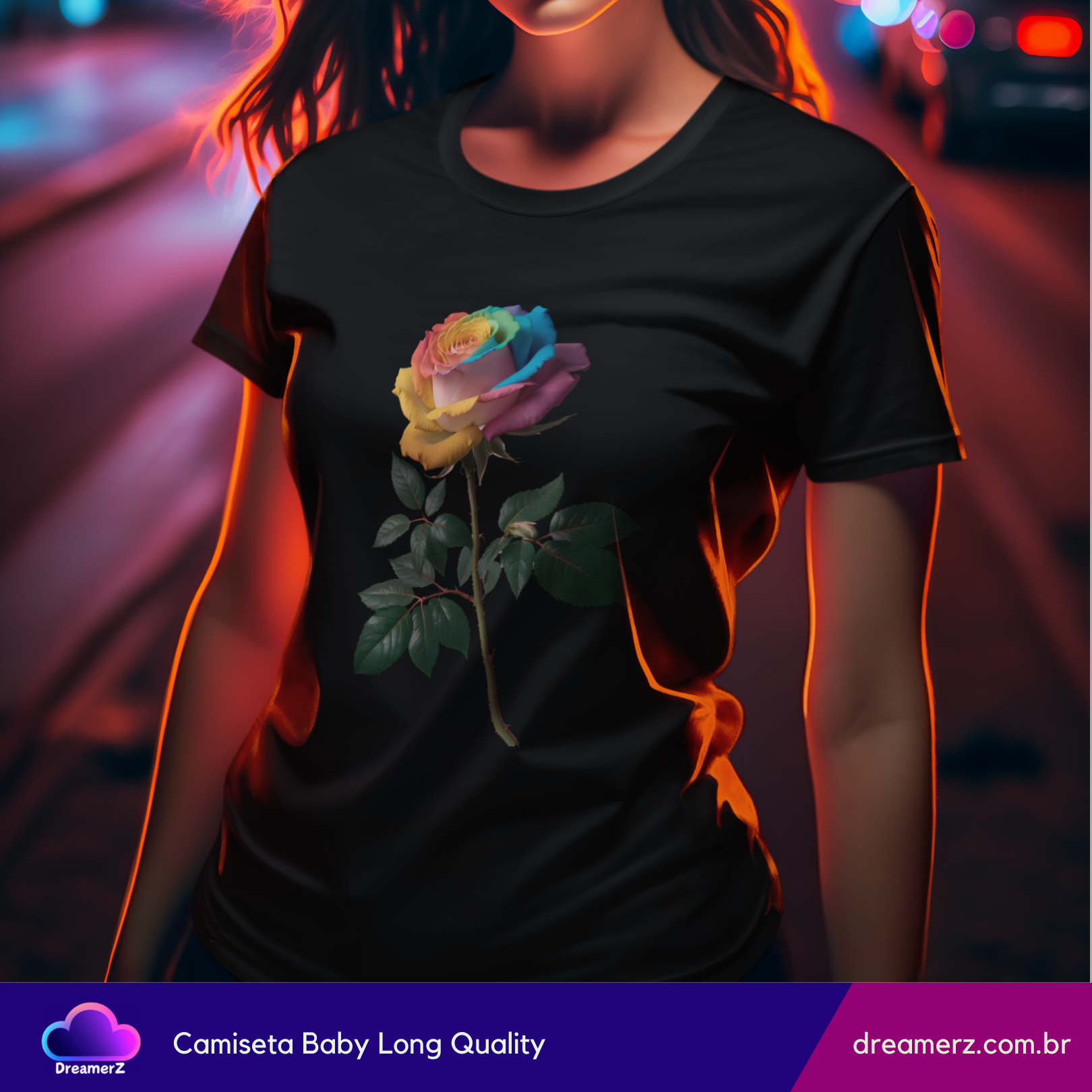 A Rosa Arco-Íris simboliza a beleza da diversidade, do amor e da liberdade de ser quem você é. Com traços realistas e vibrantes, essa camiseta vai colorir seus dias com estilo e sensibilidade.