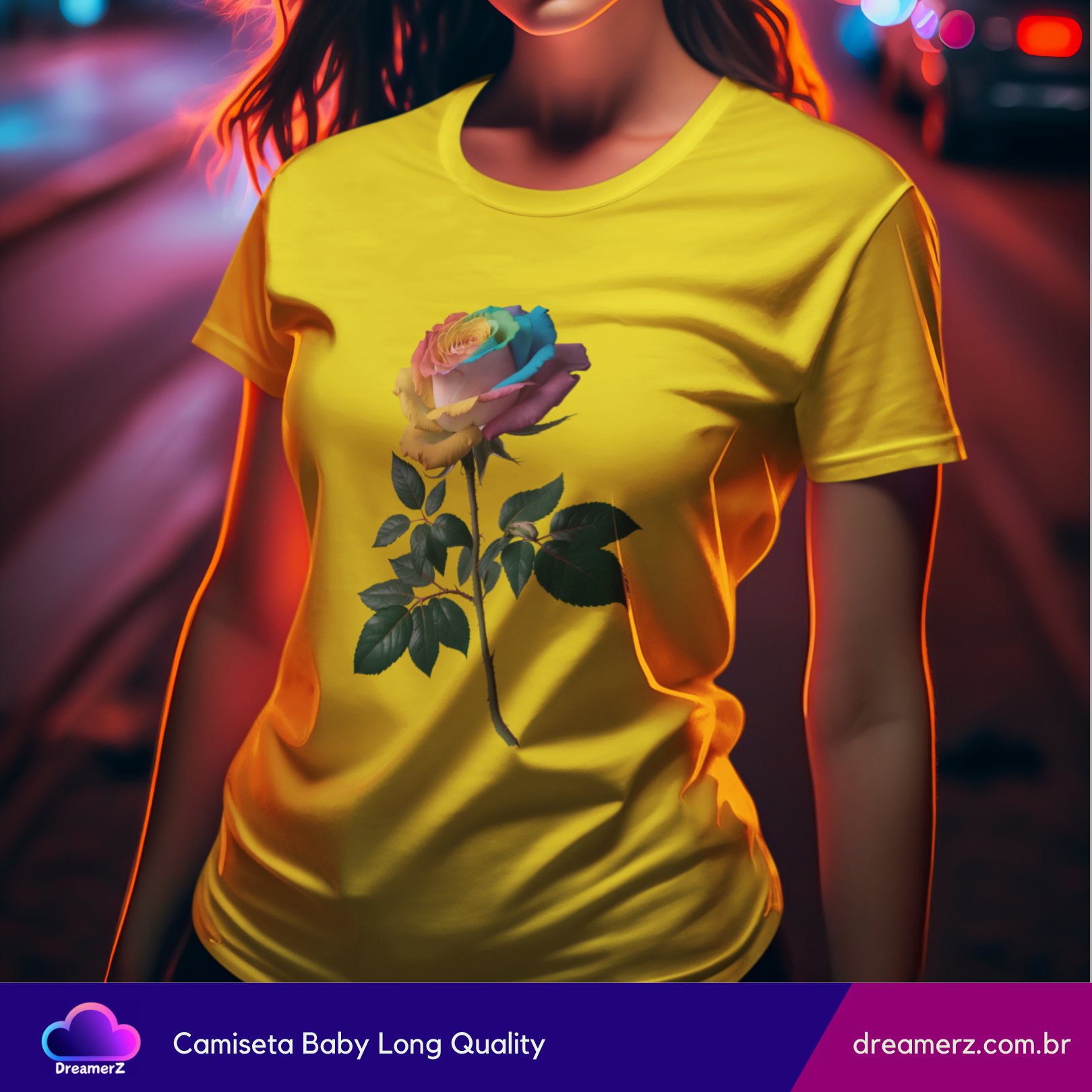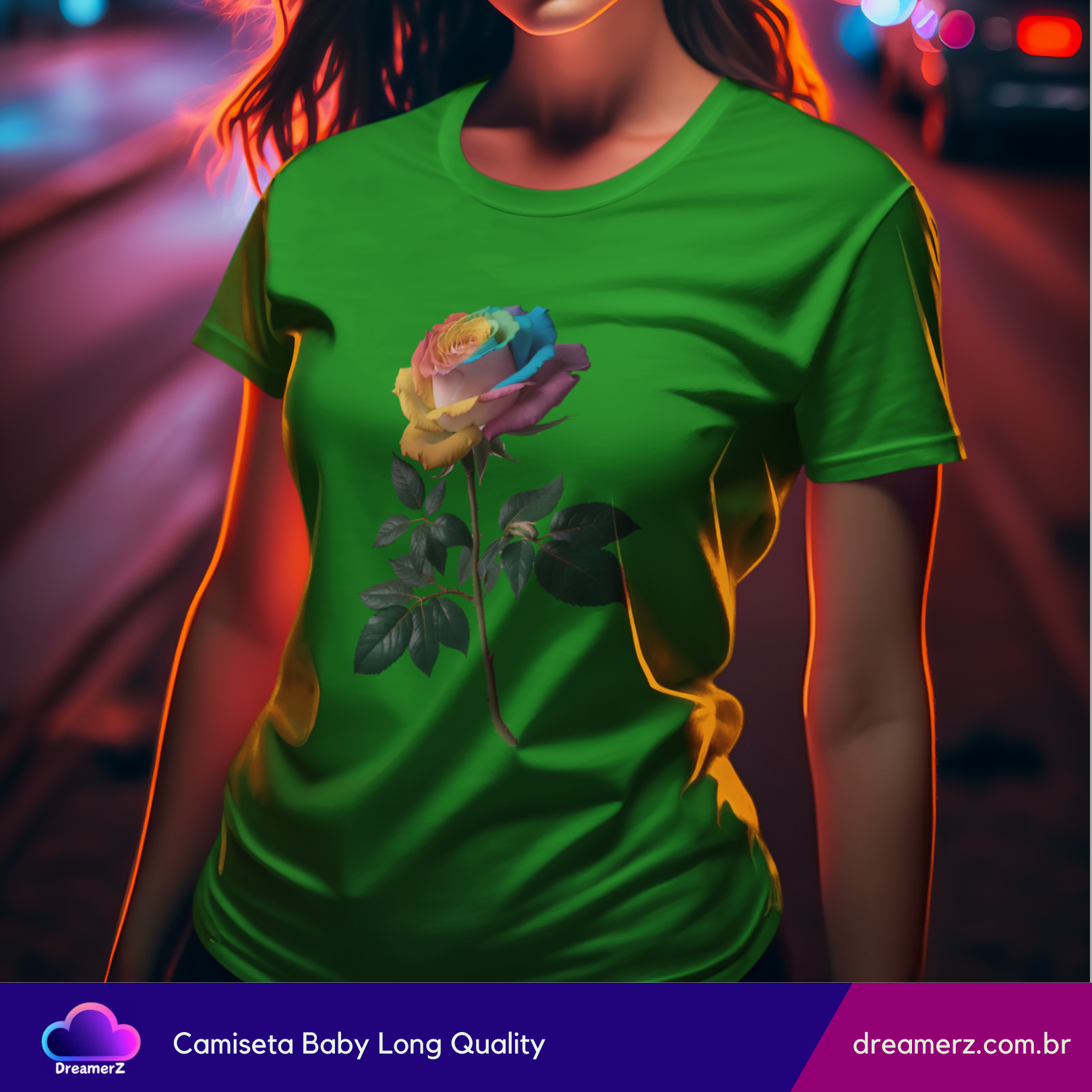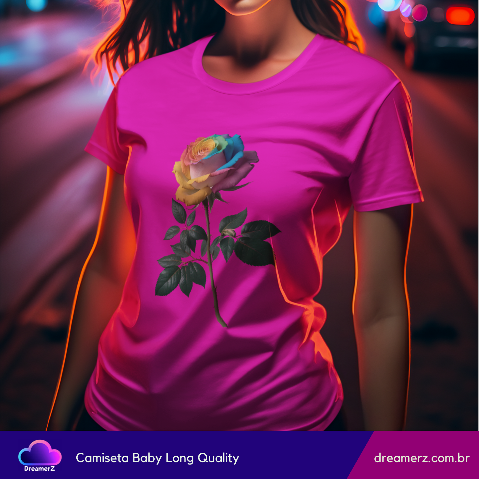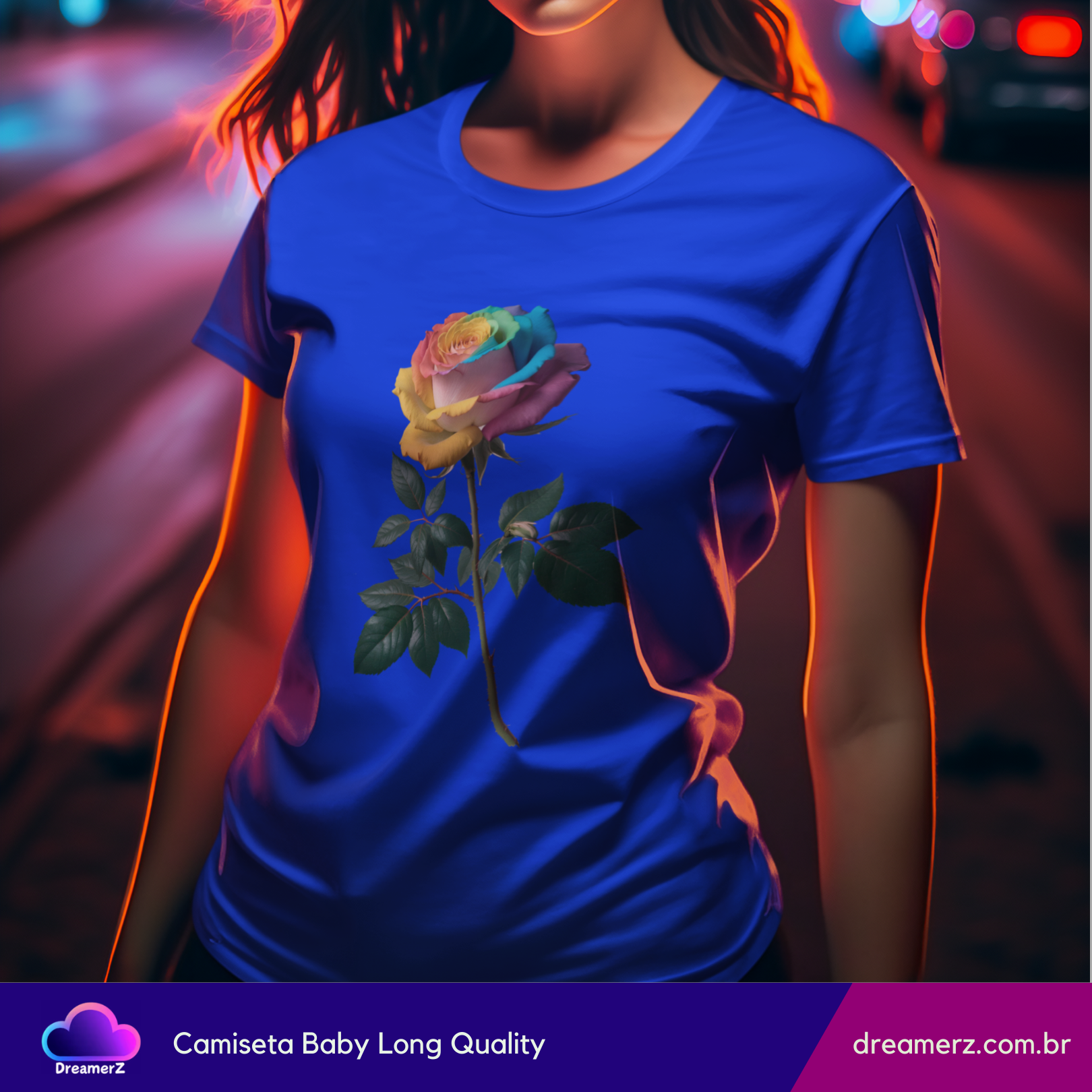 A Rosa Arco-Íris simboliza a beleza da diversidade, do amor e da liberdade de ser quem você é. Com traços realistas e vibrantes, essa camiseta vai colorir seus dias com estilo e sensibilidade.