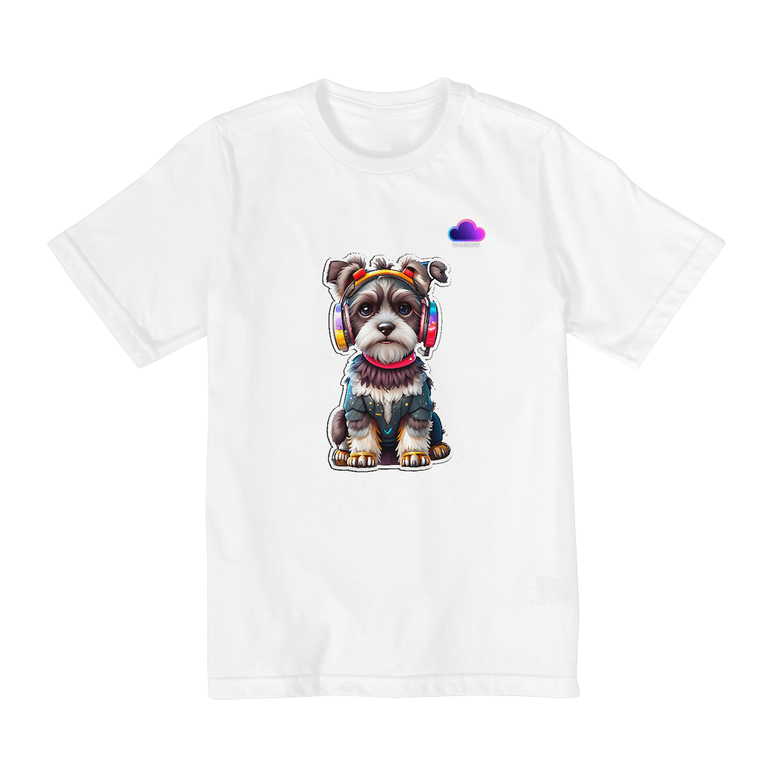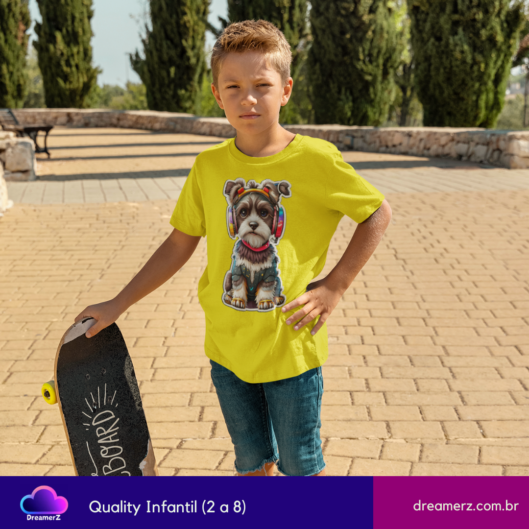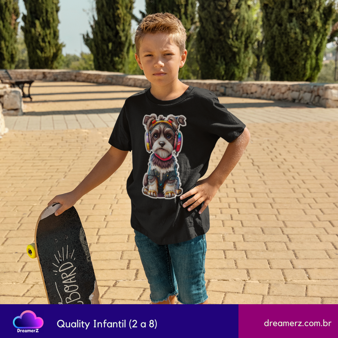 Seu novo parceiro de rolê chegou cheio de atitude e ritmo! Com fones coloridos e uma vibe urbana, esse cãozinho é o DJ mais descolado das ruas (e agora do seu look).