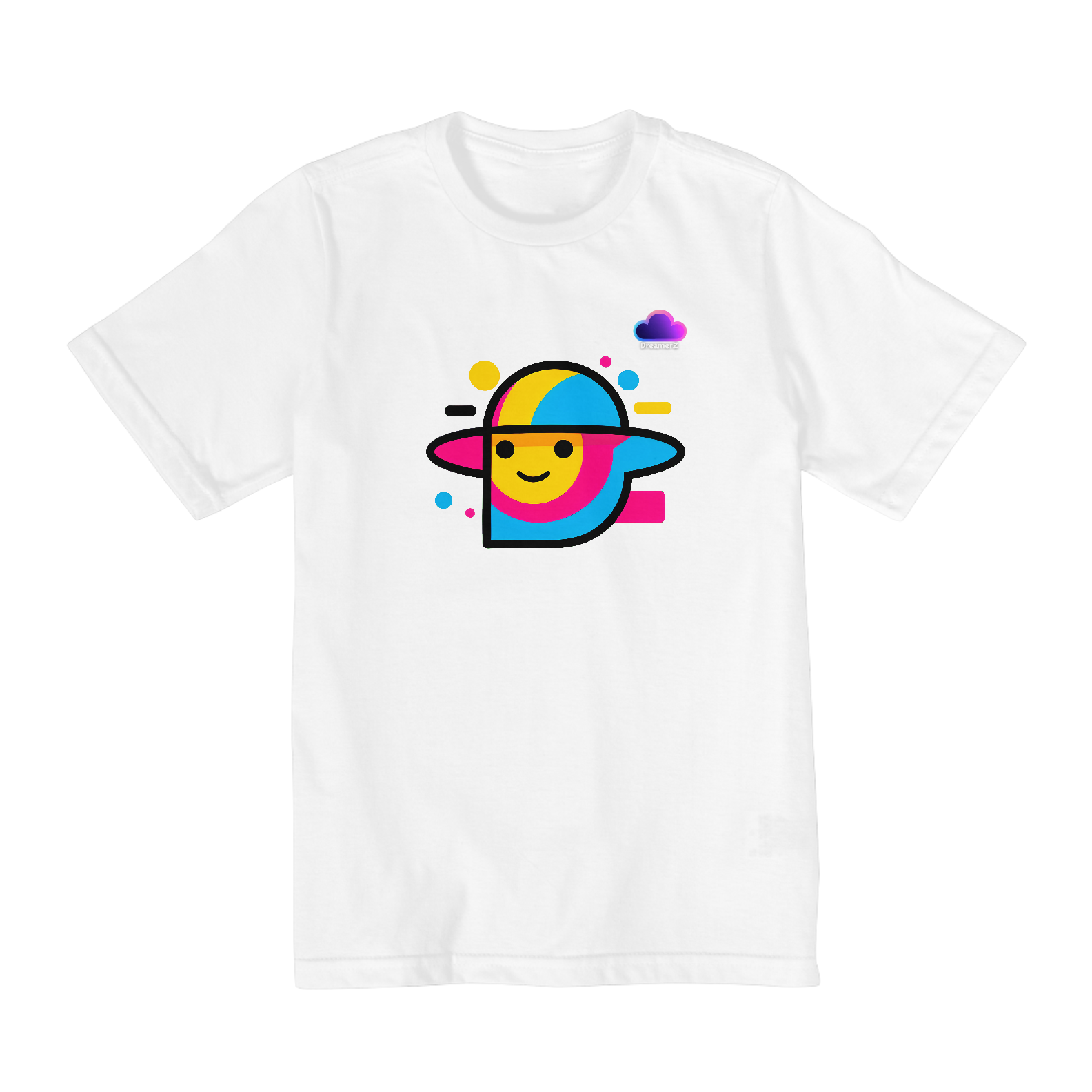 Prepare-se para orbitar o estilo! Com uma paleta vibrante de cores e um planeta sorridente, essa camiseta traz um toque retrô-pop que é simplesmente inconfundível. O design minimalista com energia cósmica vai conquistar quem ama criatividade e boas vibes.