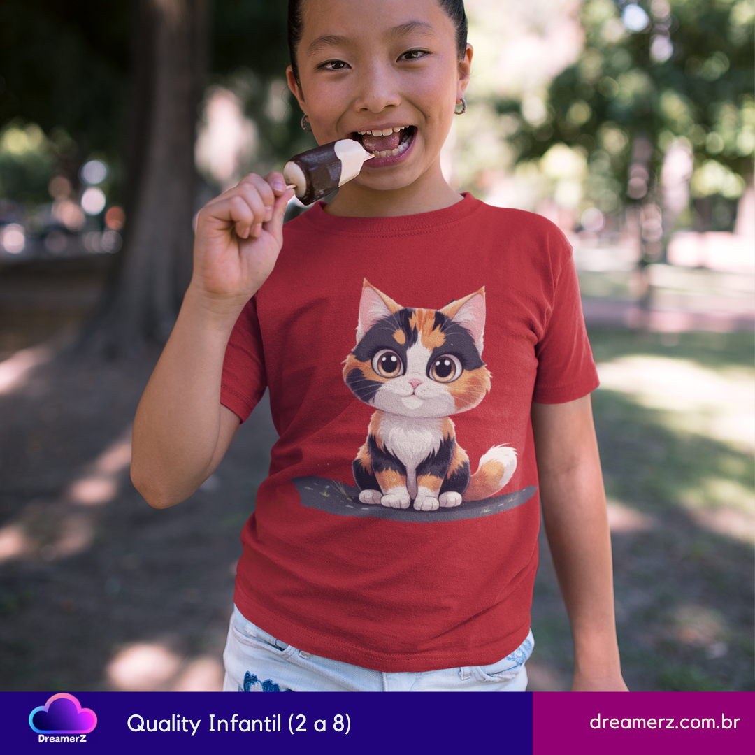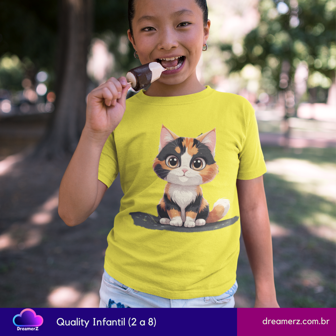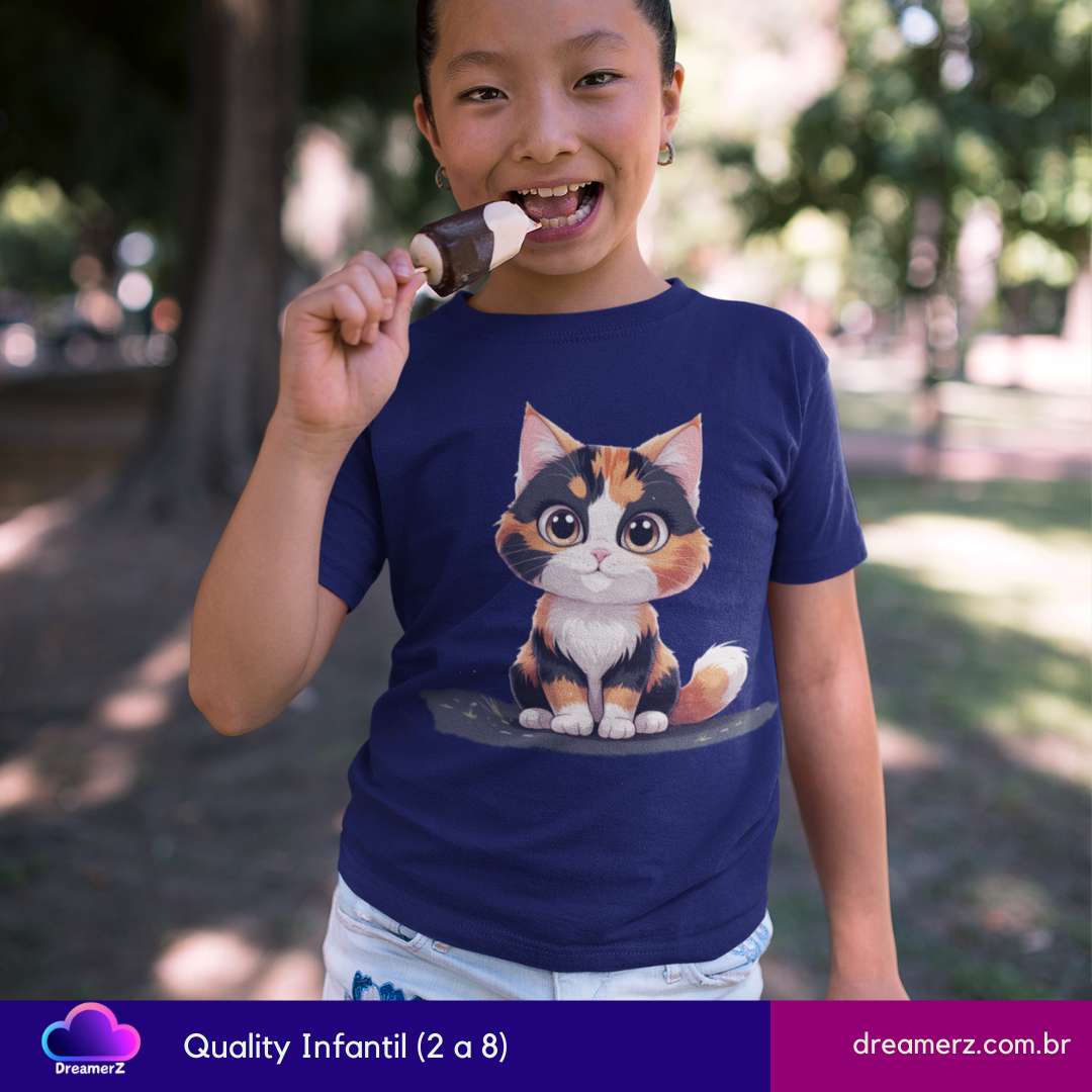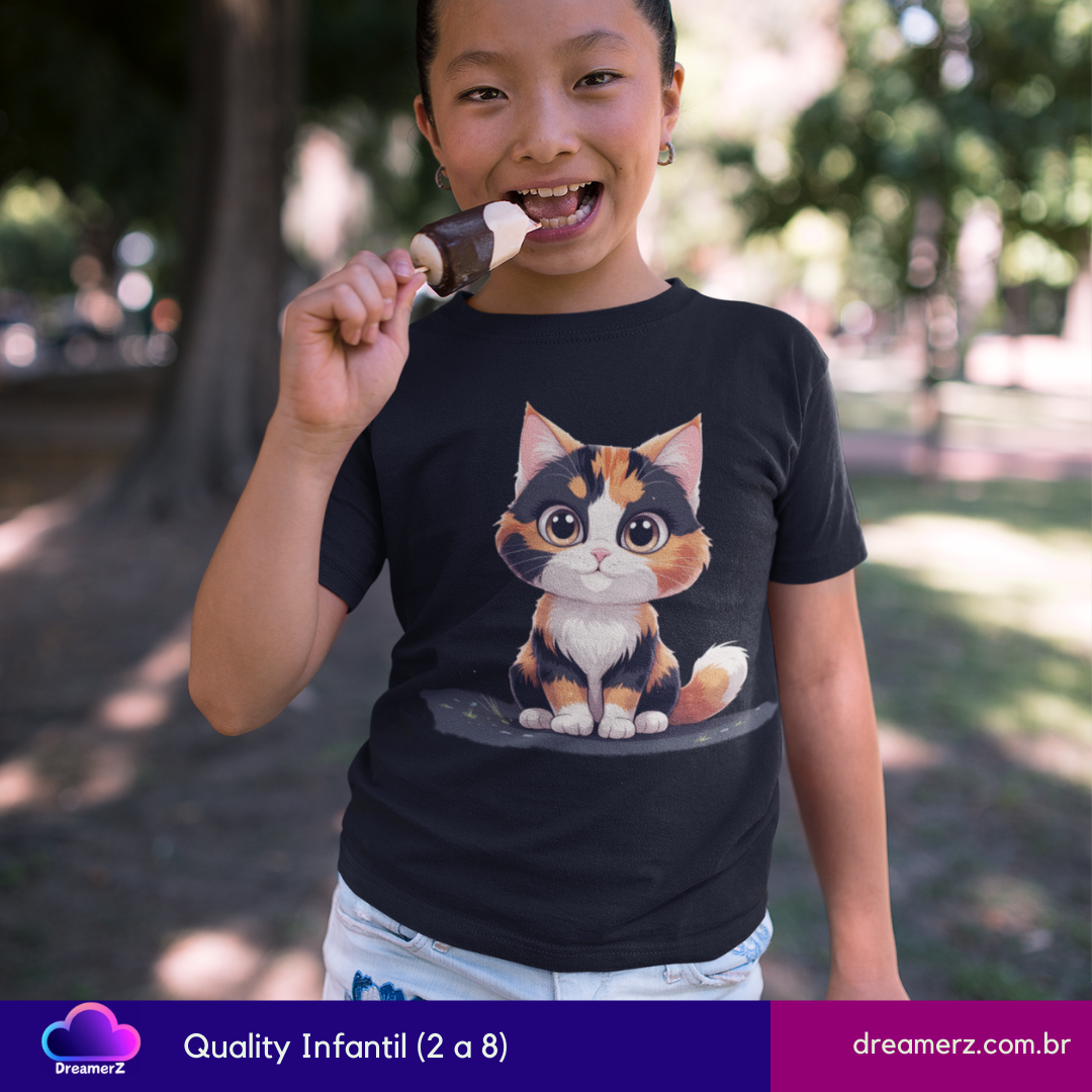 Impossível resistir a essa carinha! Com um olhar doce e traços artísticos delicados, a gatinha tricolor chega para conquistar seu coração e seu guarda-roupa.