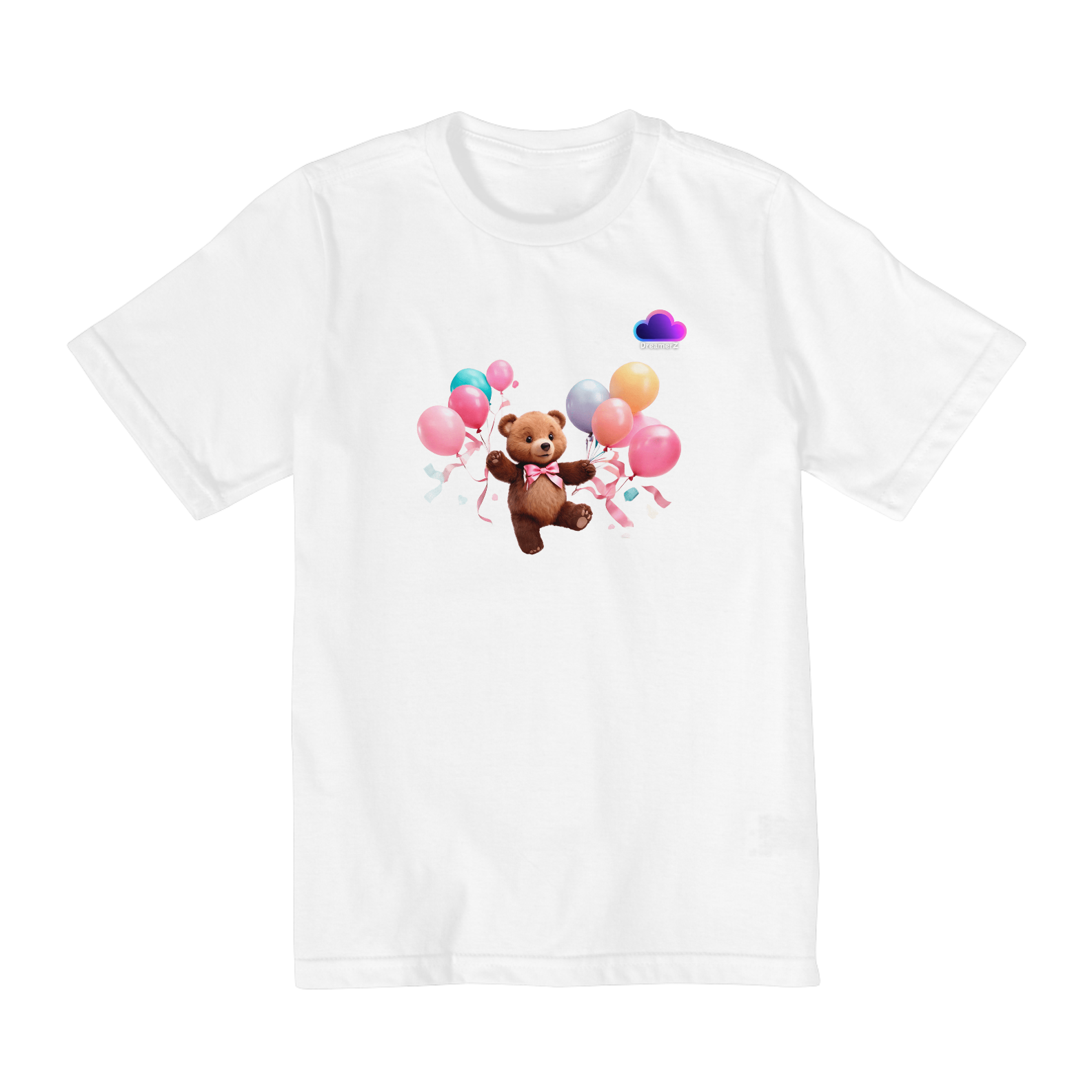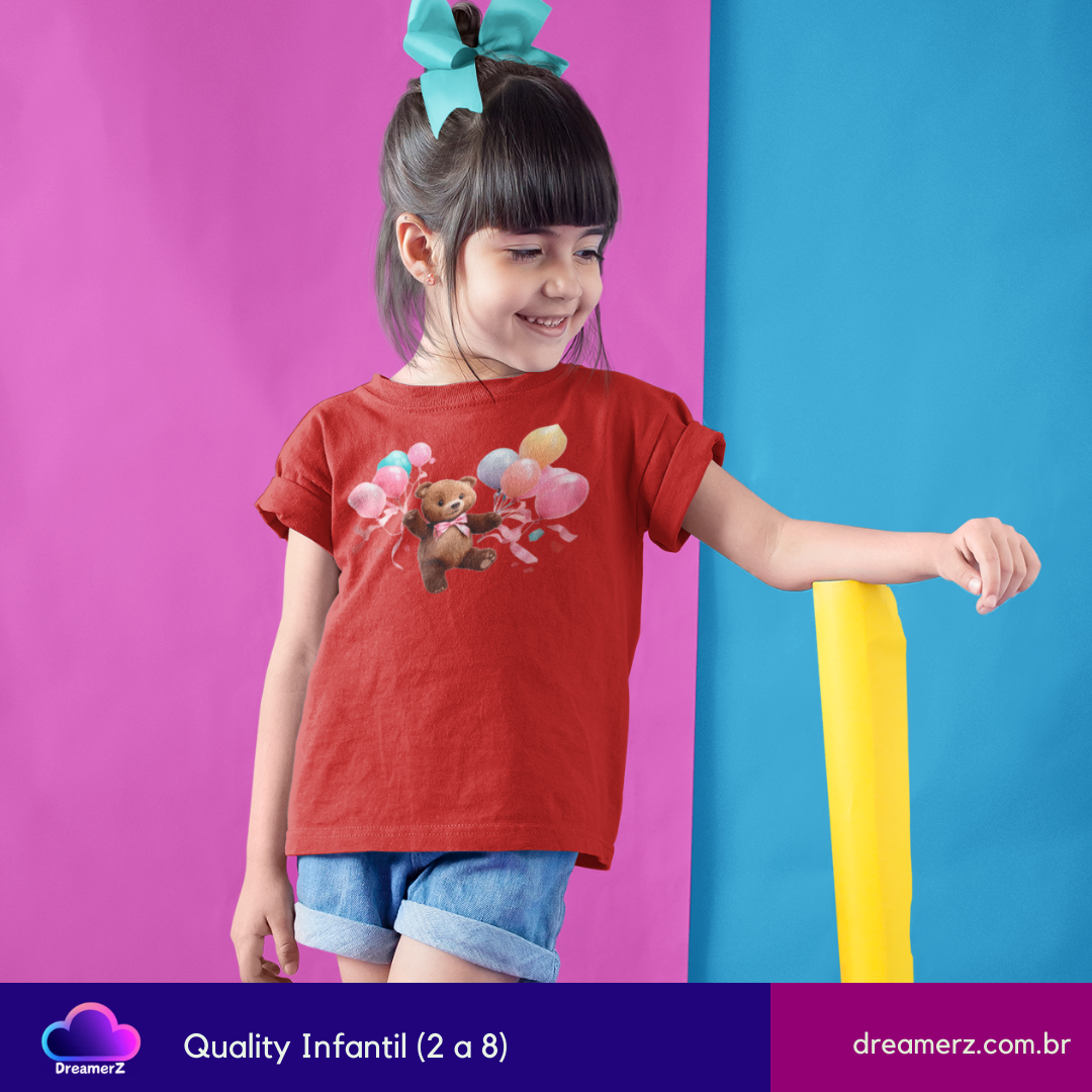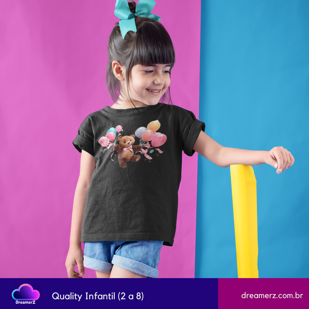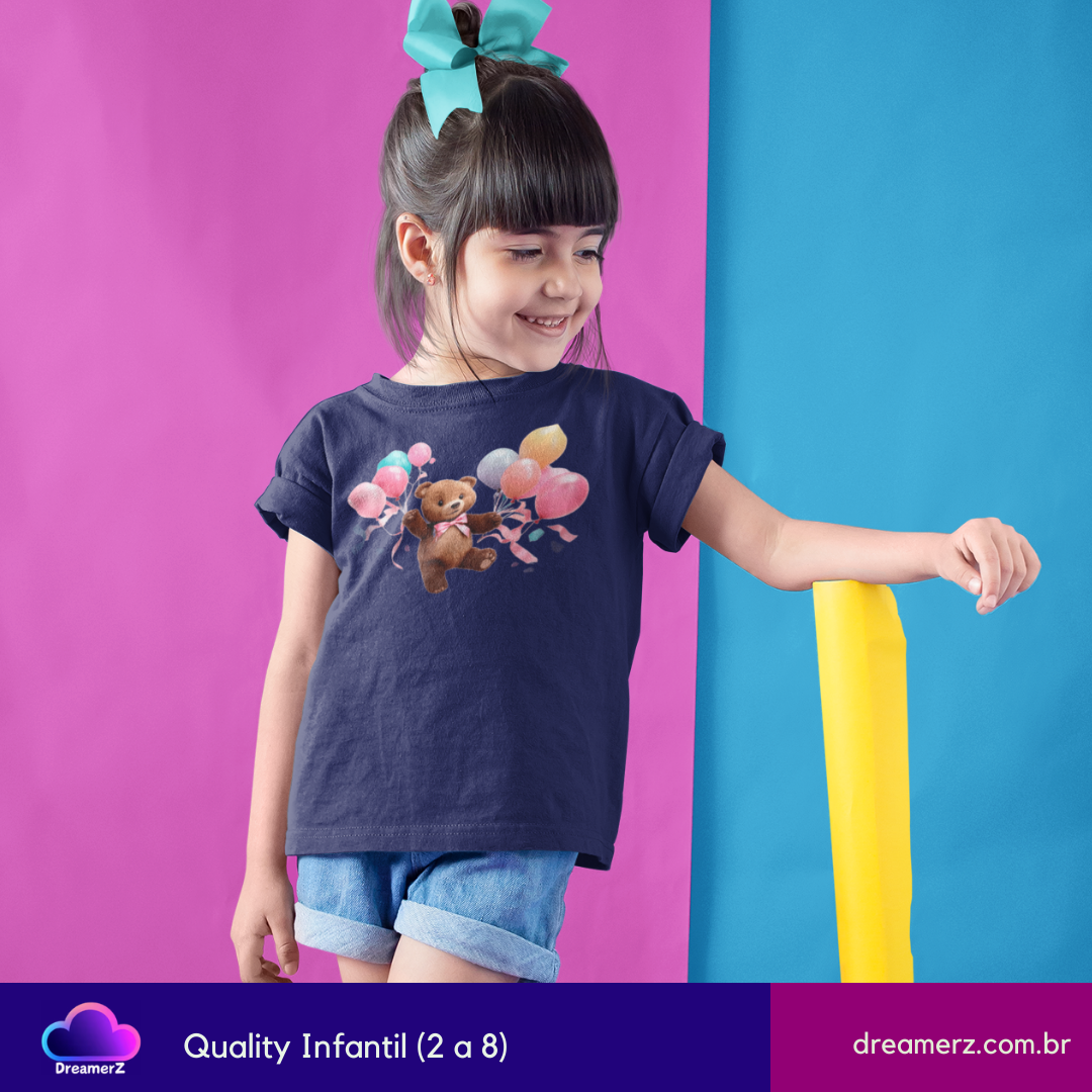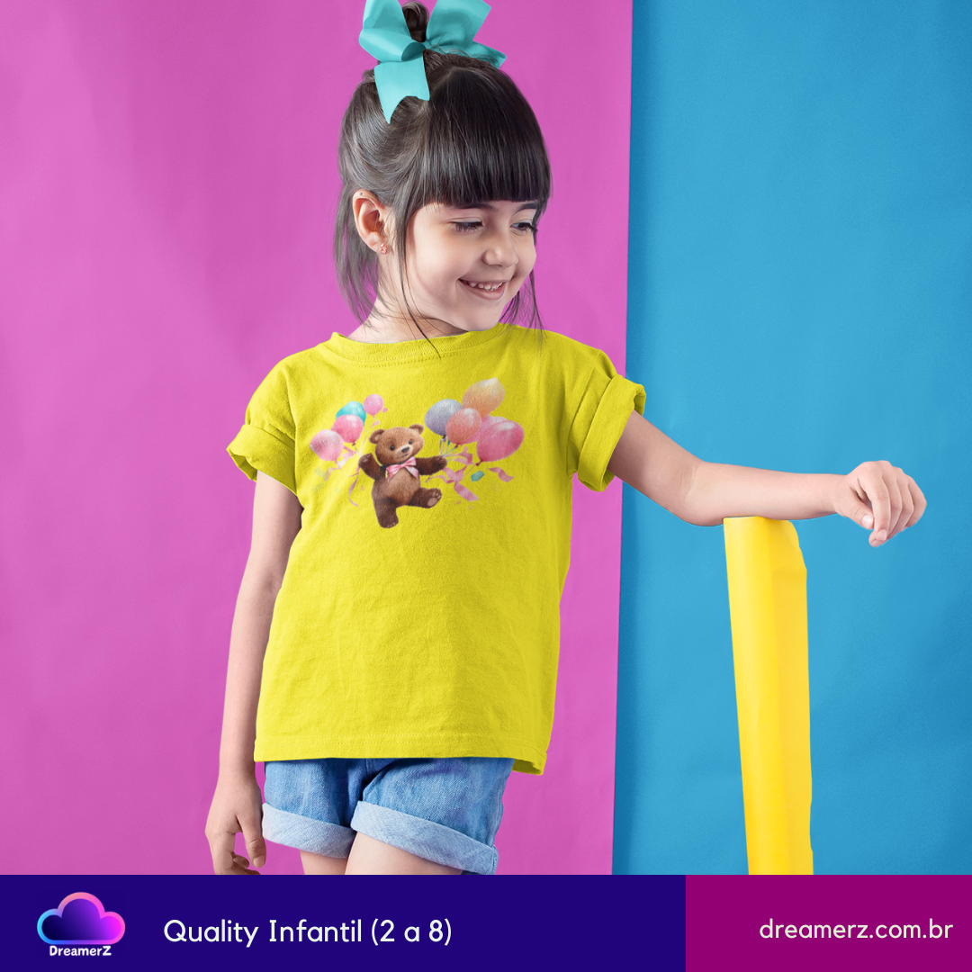 Perfeita para espalhar sorrisos! Essa estampa traz um ursinho fofo, com gravatinha rosa, voando entre balões coloridos. Uma explosão de ternura e diversão que encanta crianças e adultos que amam um toque lúdico!