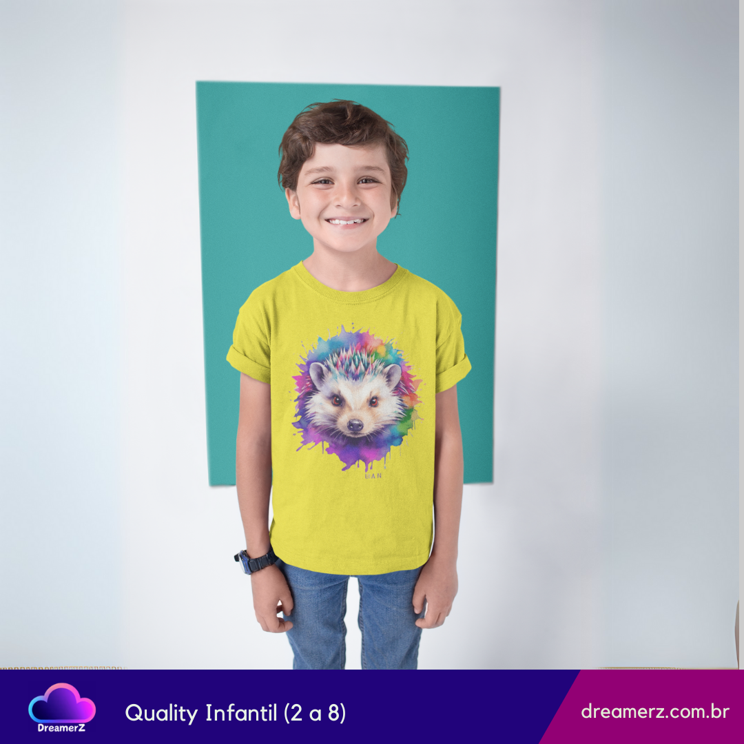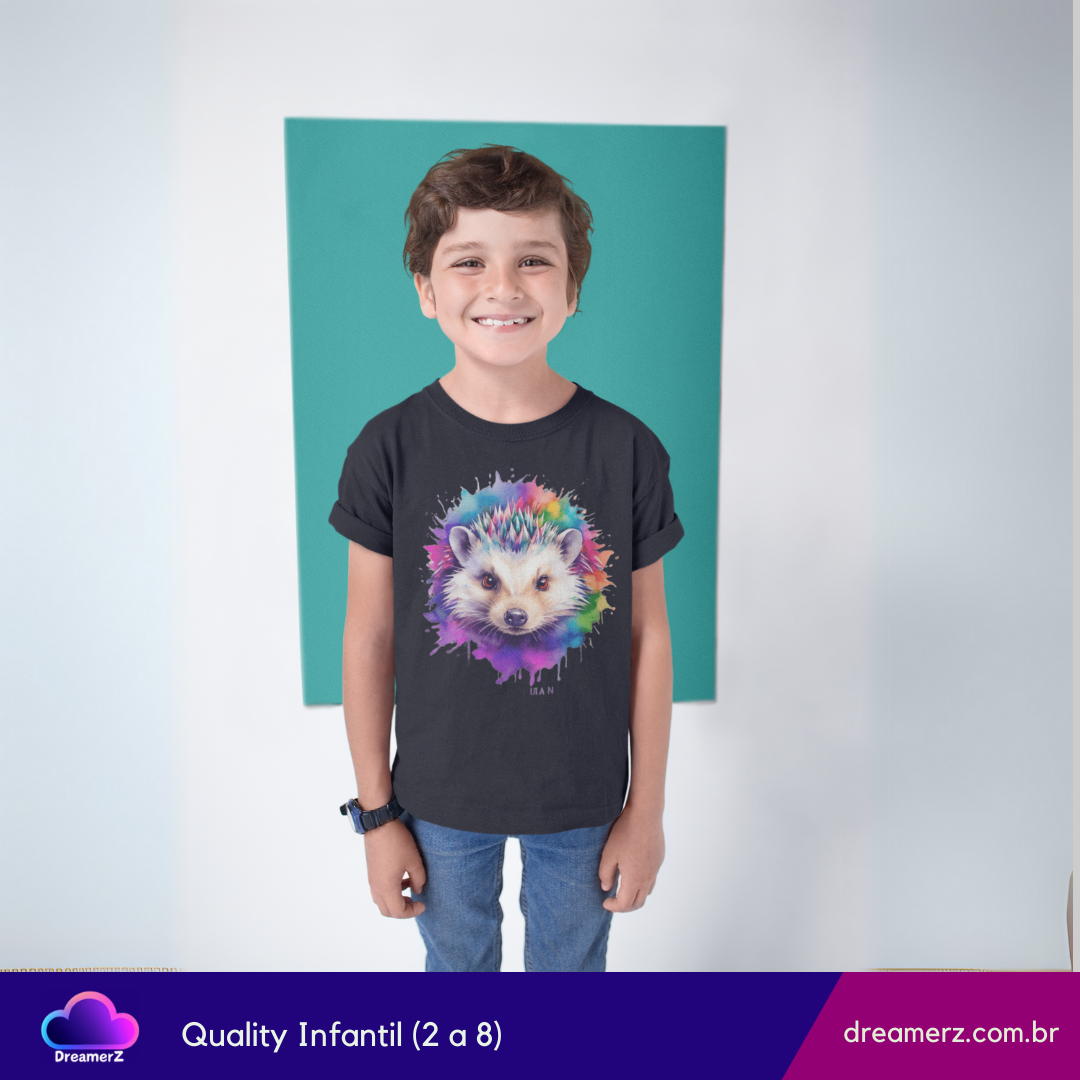 Essa estampa é uma explosão artística de charme! Um ouriço super realista com um toque de aquarela vibrante ao redor, perfeito para quem ama pets exóticos, arte e muita personalidade.