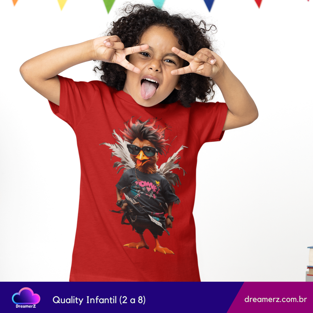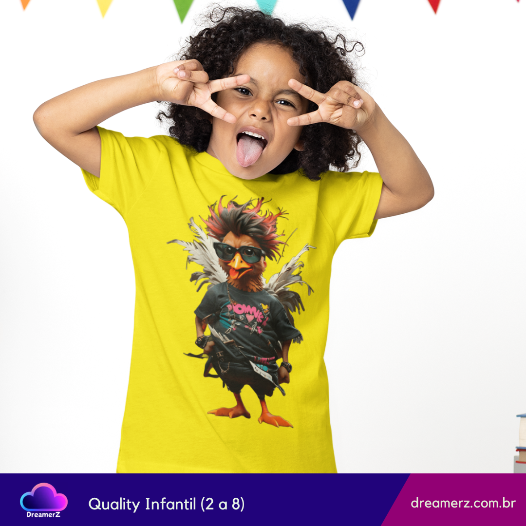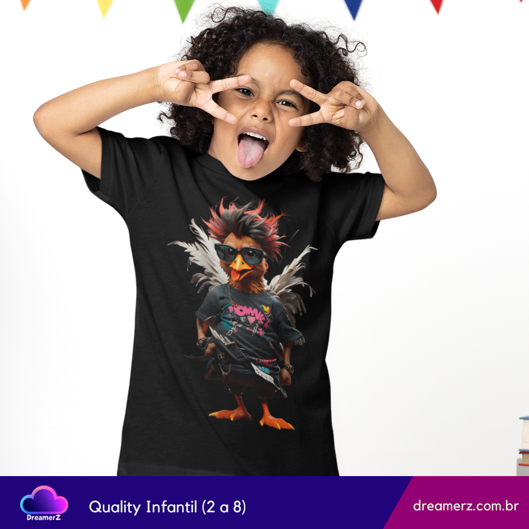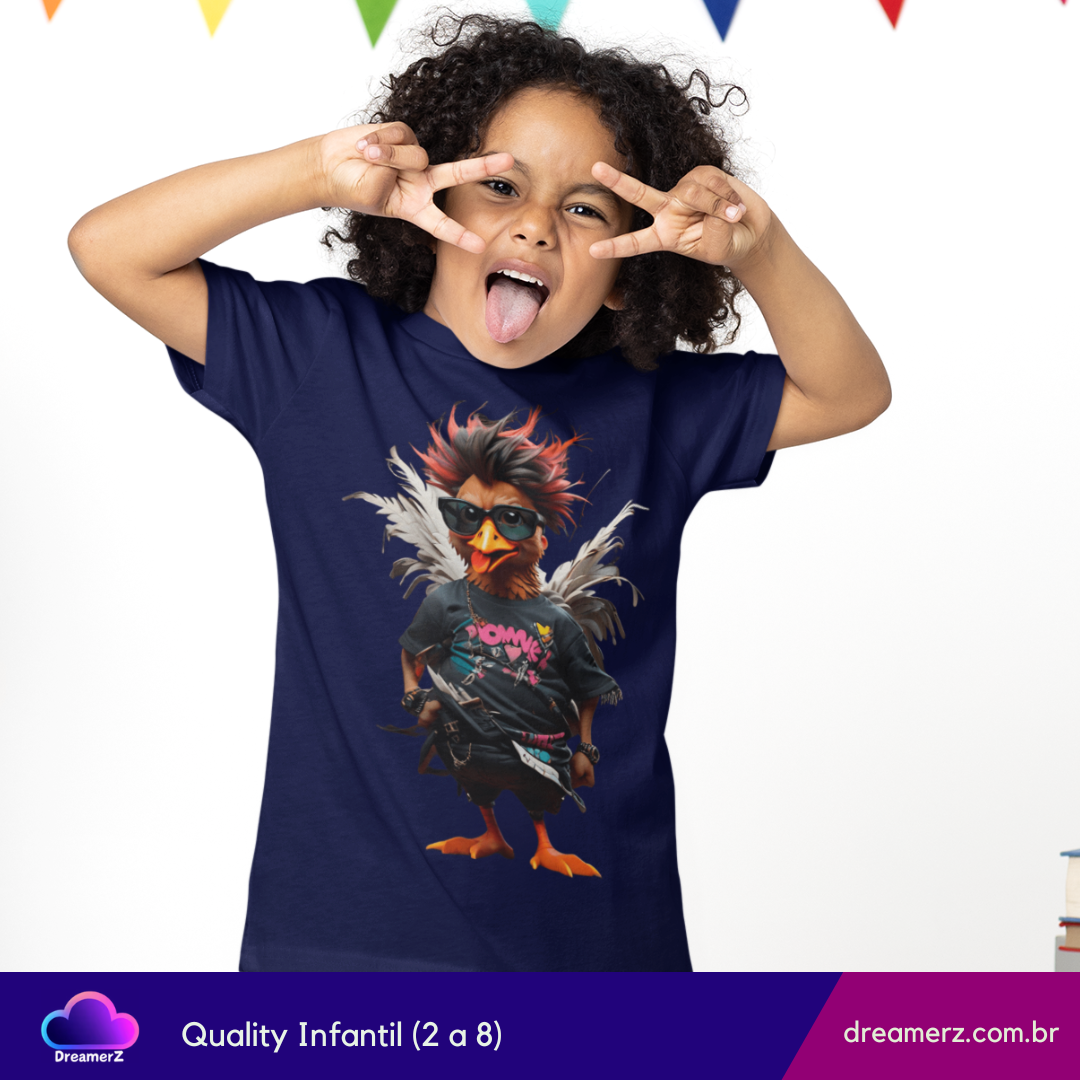 Com visual punk, moicano descolado e pose de astro do rock, essa camiseta é feita pra quem não segue o bando e curte um estilo cheio de atitude.