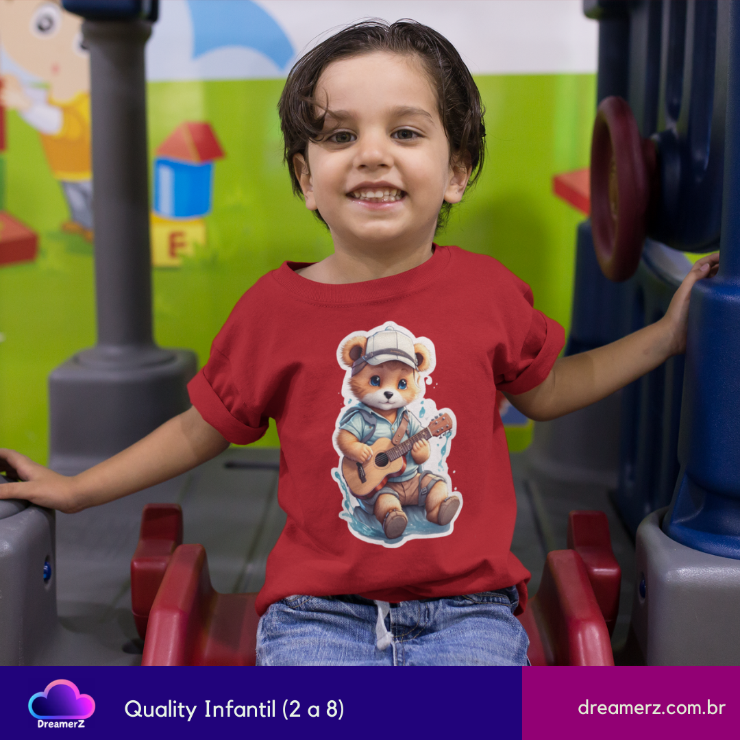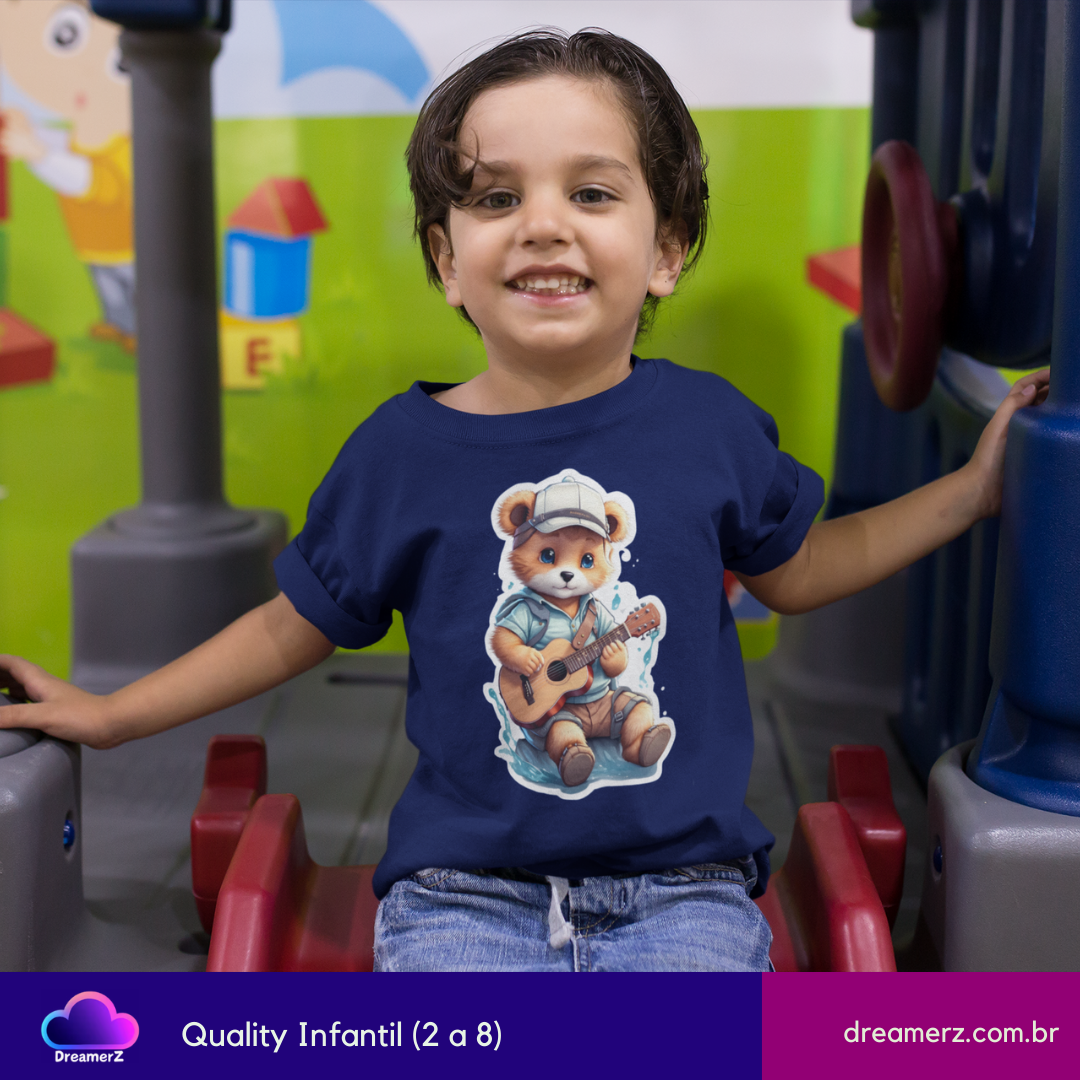 Prepare-se pra se apaixonar com esse ursinho que canta com a alma! Com sua camiseta azul, boné virado e violão no colo, ele transmite aquele clima gostoso de fim de tarde na beira do rio, onde a música e a tranquilidade andam juntas.