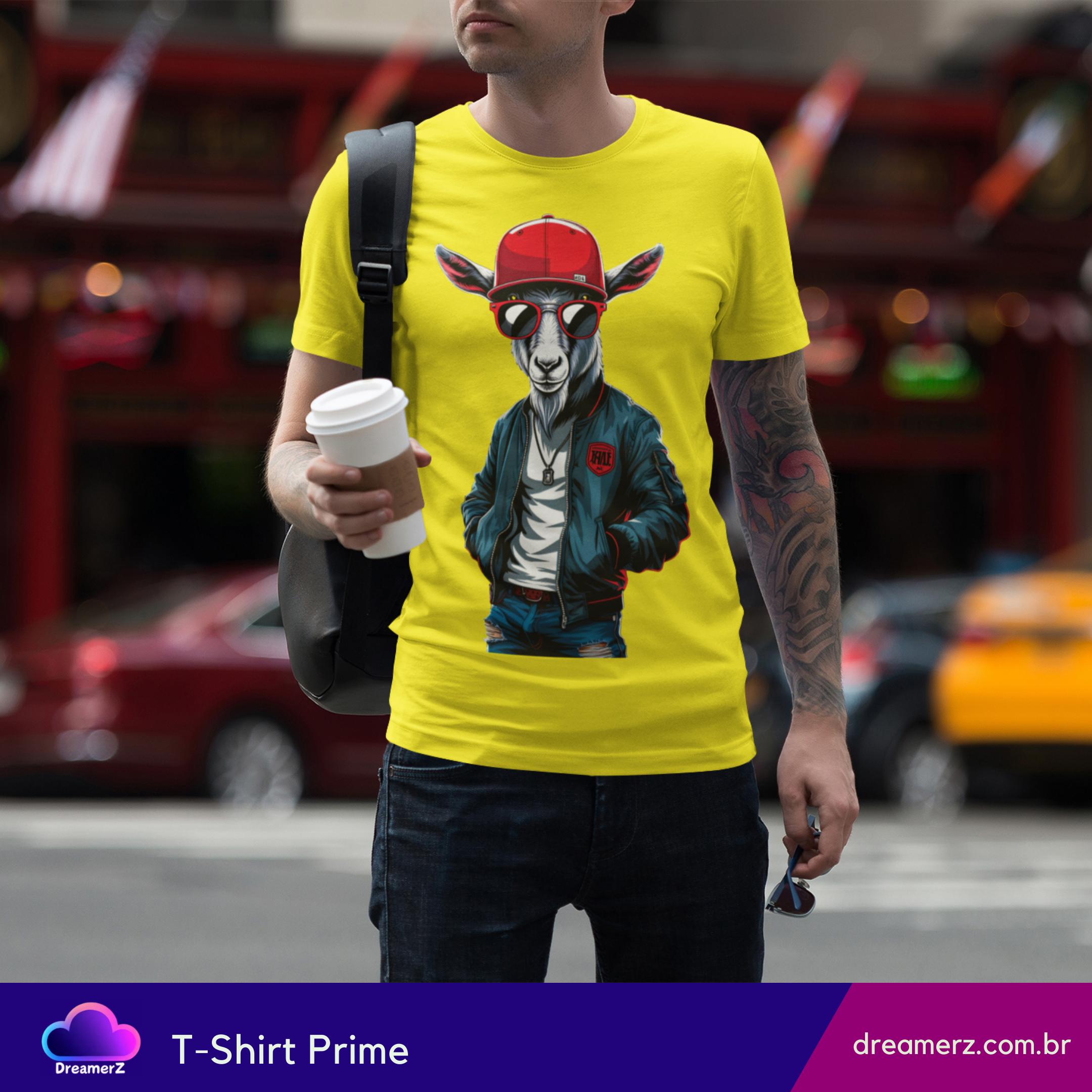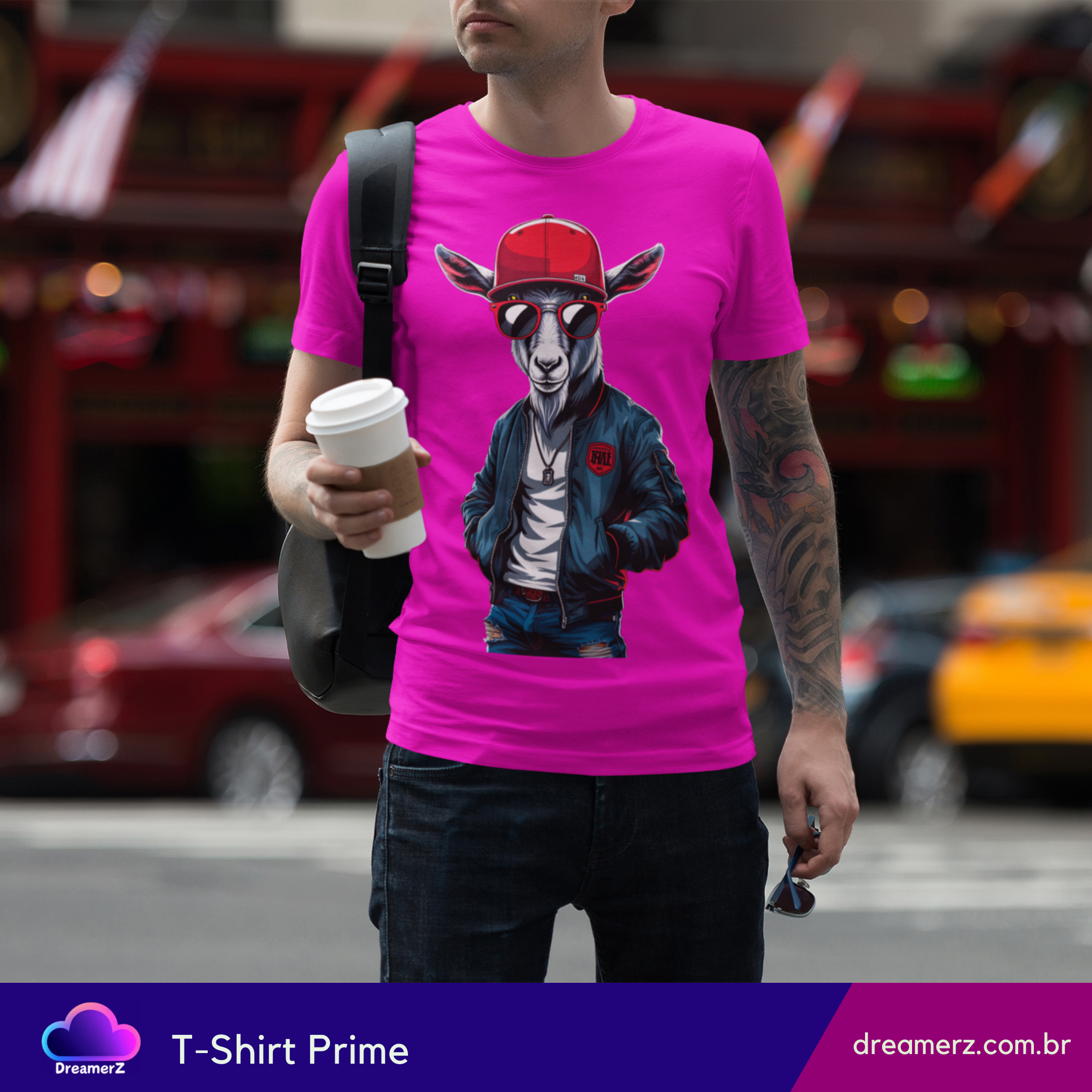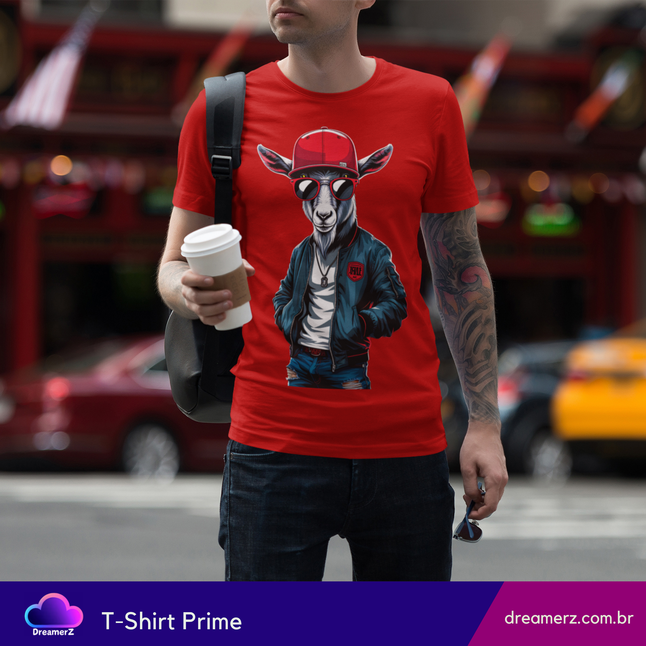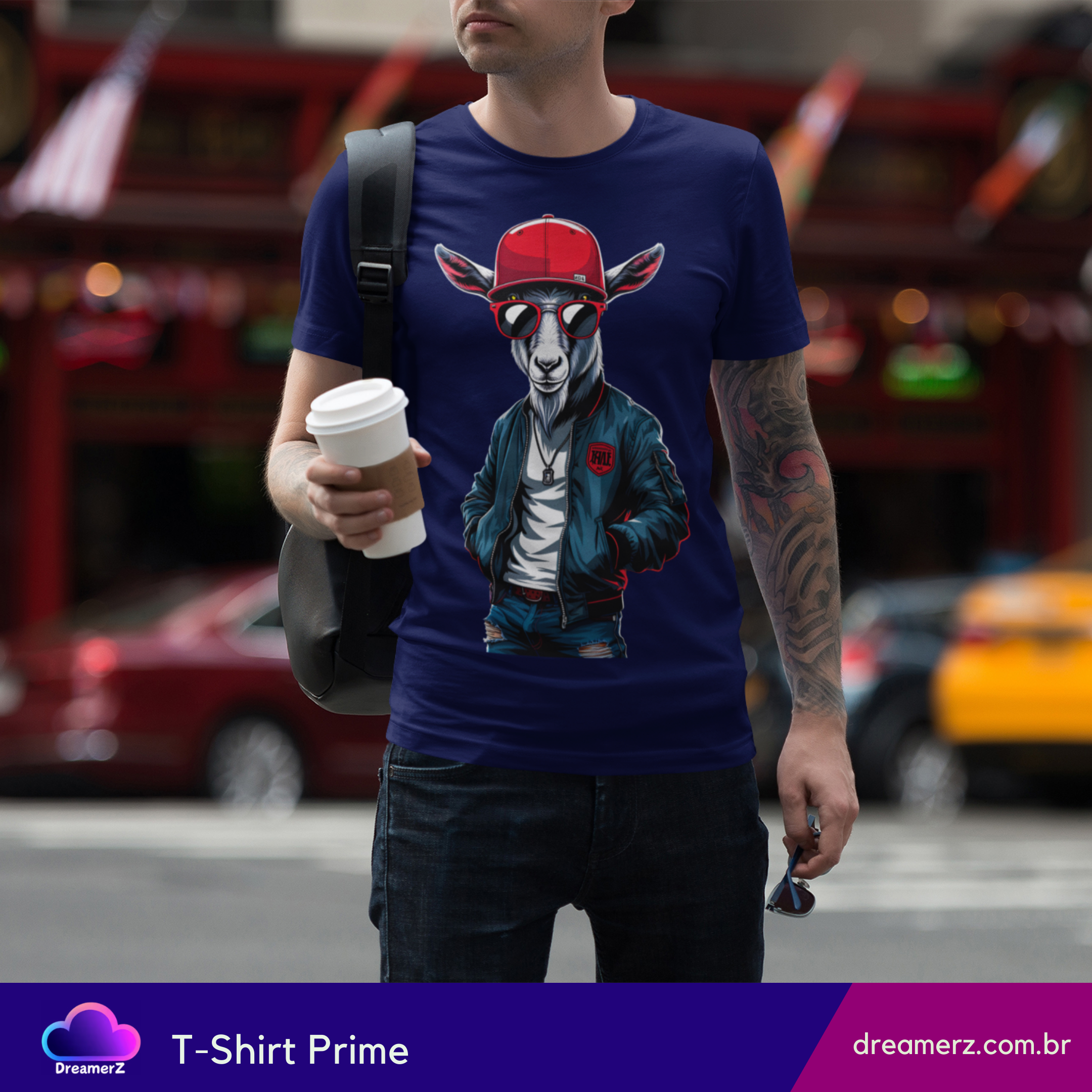 Quando o visual street encontra a atitude de quem nasceu pra ser lenda, o resultado é essa camiseta com um bode estiloso, cheio de presença, personalidade e muito drip.