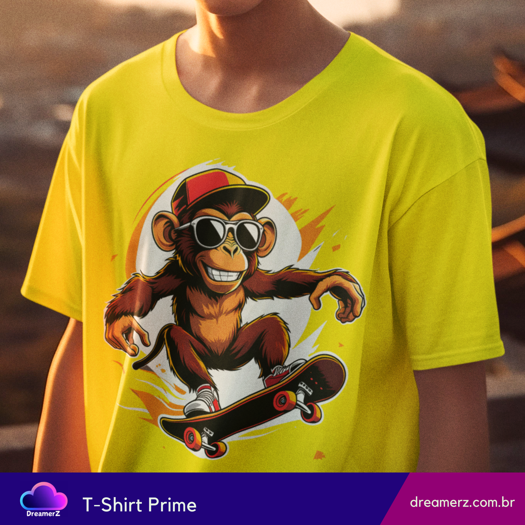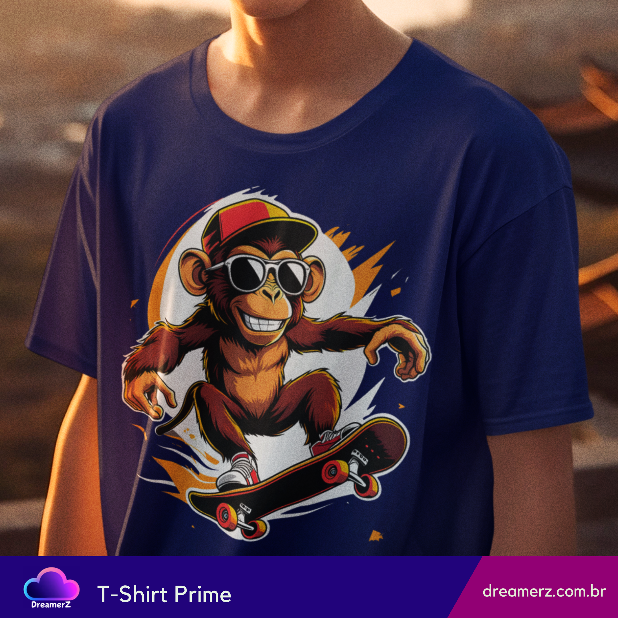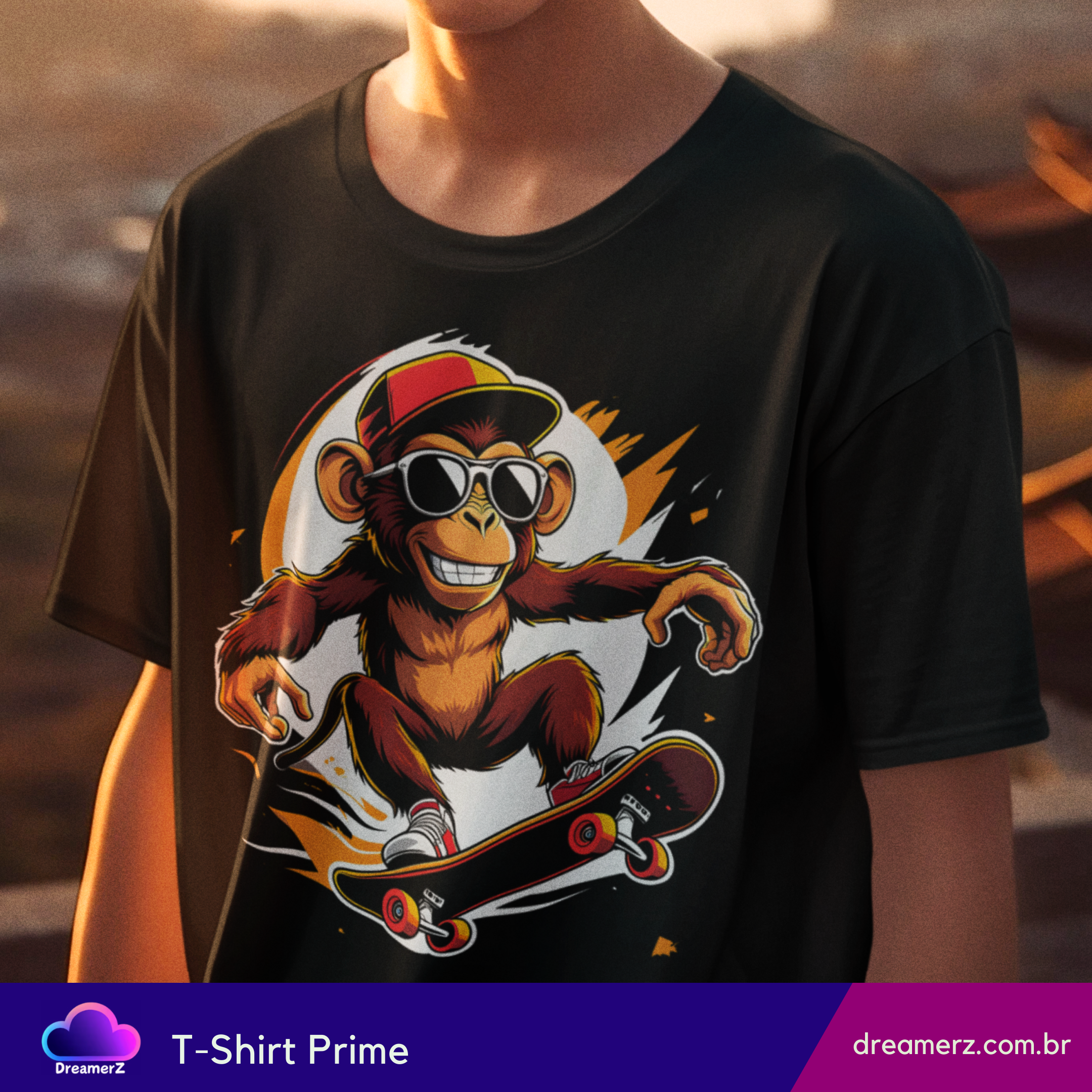 Solte o freio, aumente o estilo e voe nas manobras com essa camiseta que traz um macaquinho skatista no auge da vibe!