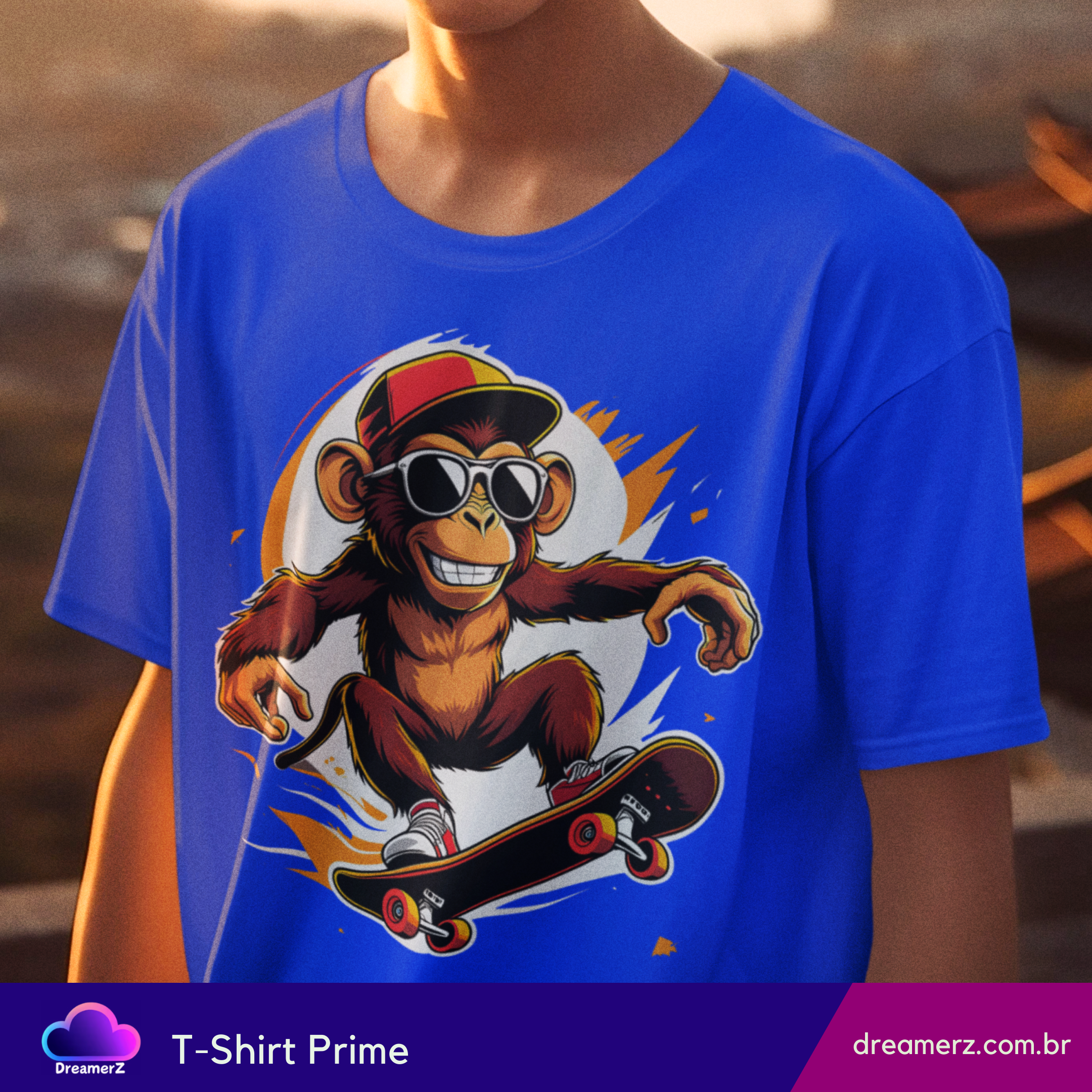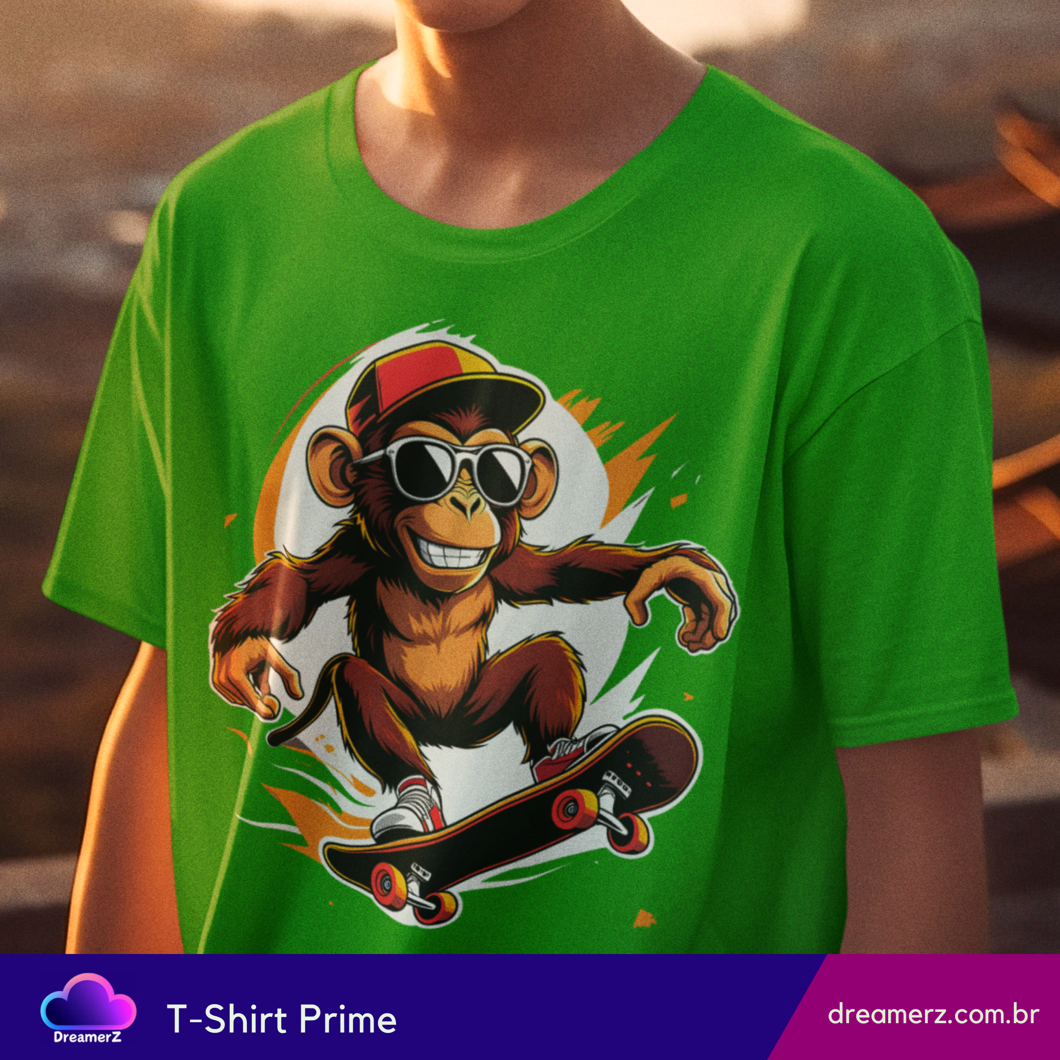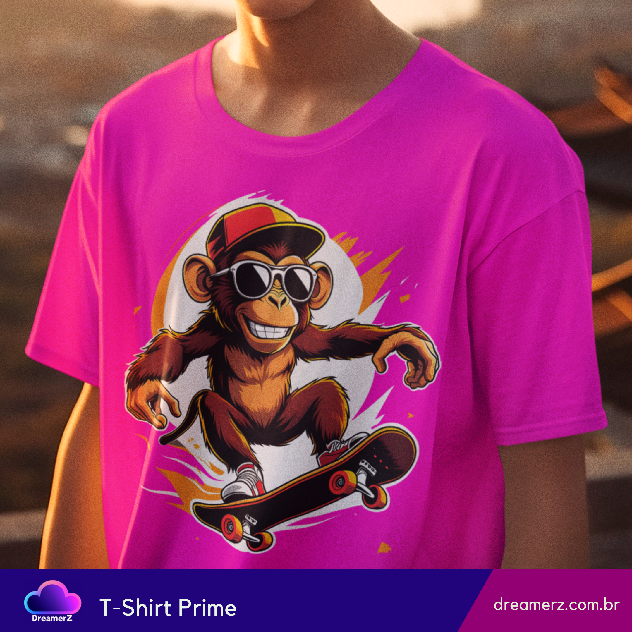 Solte o freio, aumente o estilo e voe nas manobras com essa camiseta que traz um macaquinho skatista no auge da vibe!